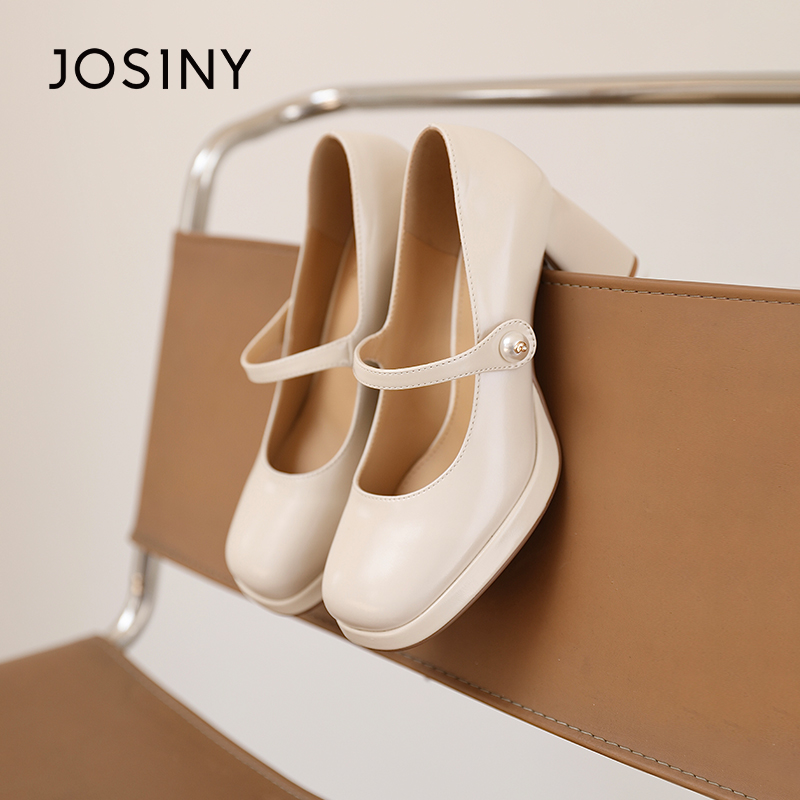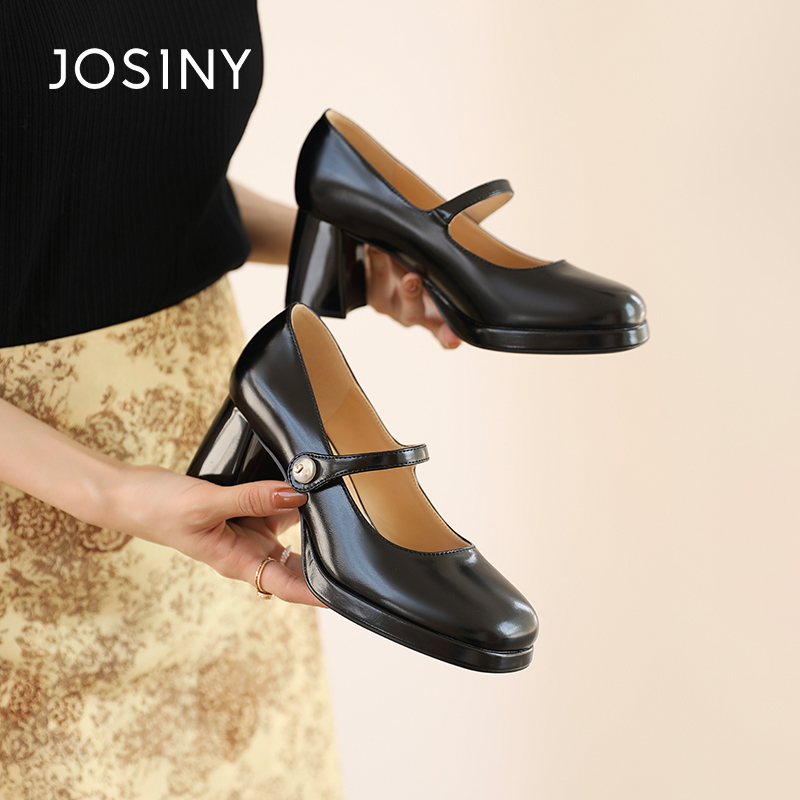 卓诗尼法式一字带单鞋女2025春季新款法式高级感粗跟配裙子高跟鞋