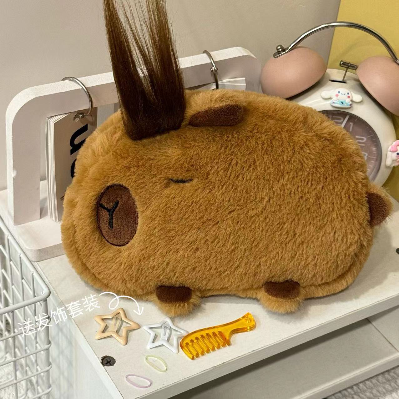 2024新款可爱卡皮巴拉笔袋毛绒炸毛卡通文具收纳袋大容量文具盒
