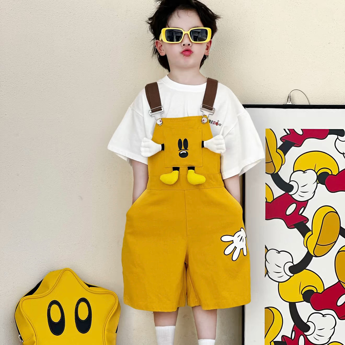男童女童夏季新款短袖儿童可爱洋气背带裤套装宝宝洋气两件套韩版