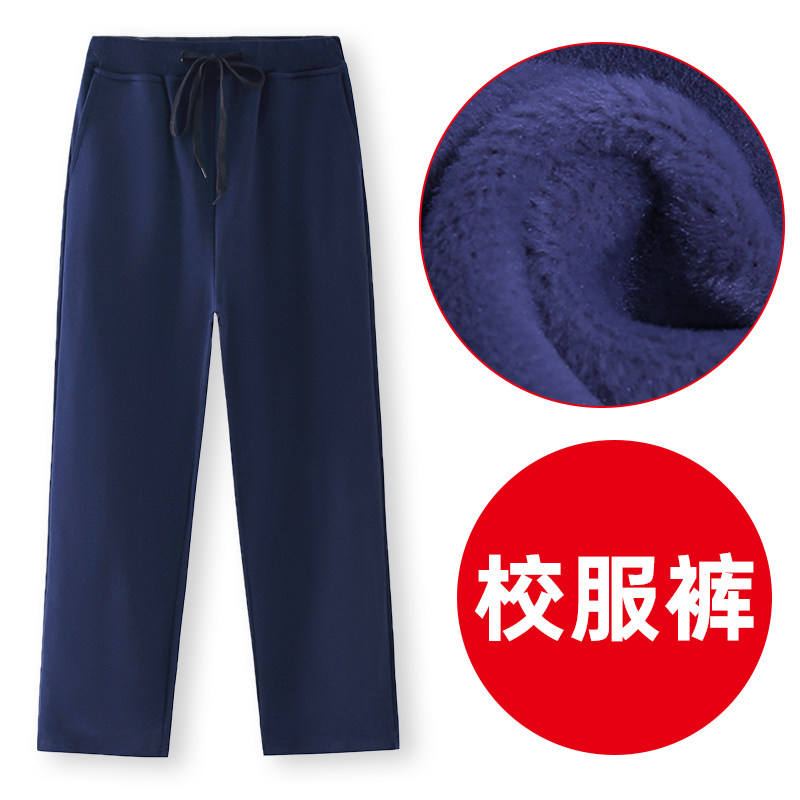 深蓝色大童校服裤小学生裤子男童加绒藏青藏蓝色秋冬女童厚运动裤
