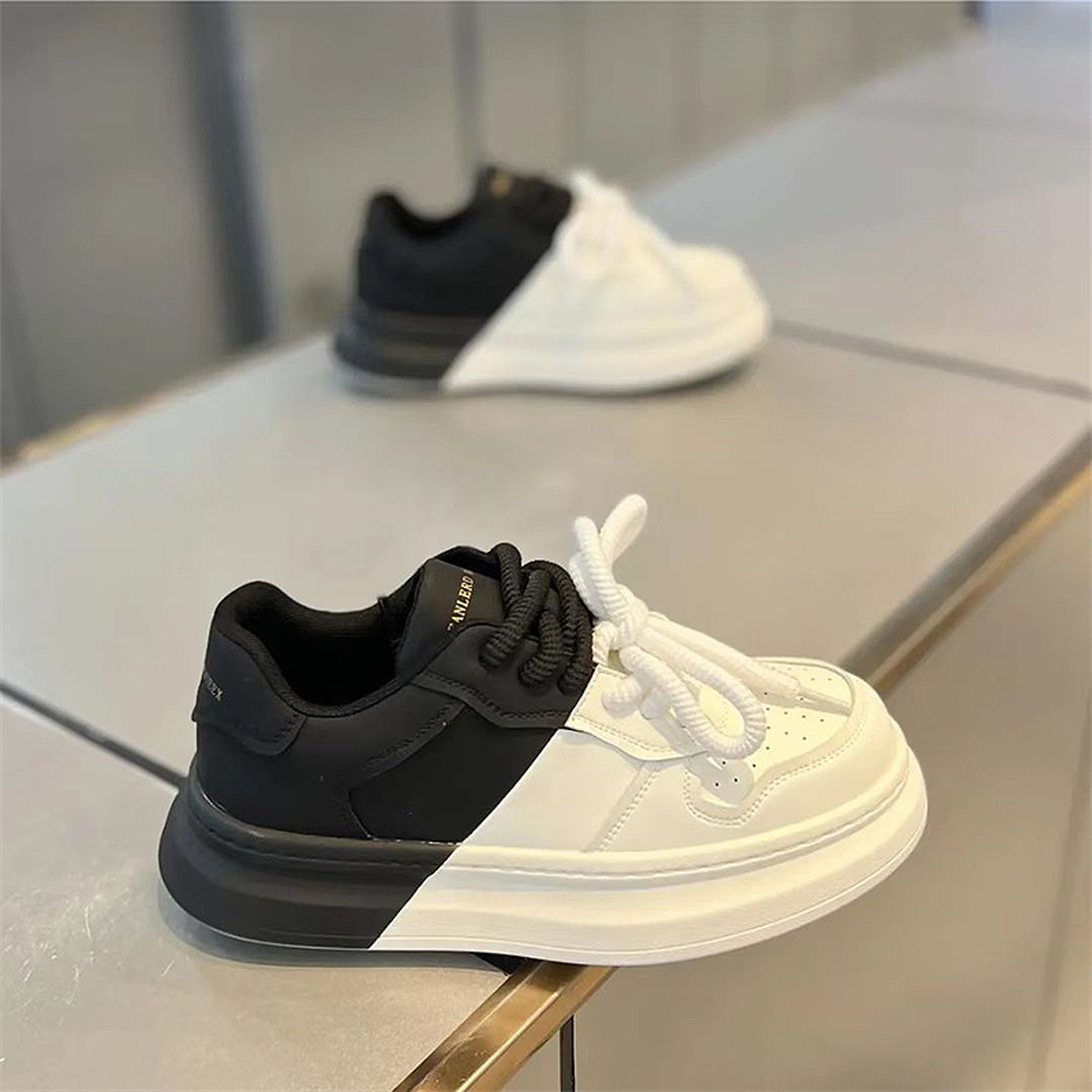 男鞋秋冬百搭休闲拼色板鞋青少年皮面防水防滑运动厚底增高老爹鞋