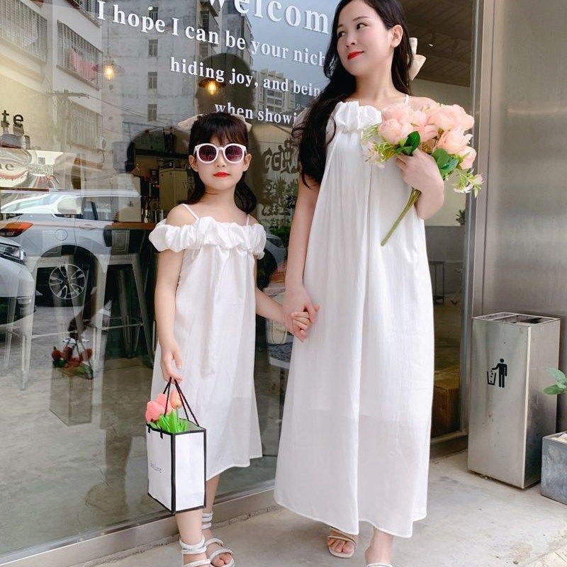 2023夏装新款亲子装母女装露肩吊带裙连衣裙沙滩长裙仙女长裙子