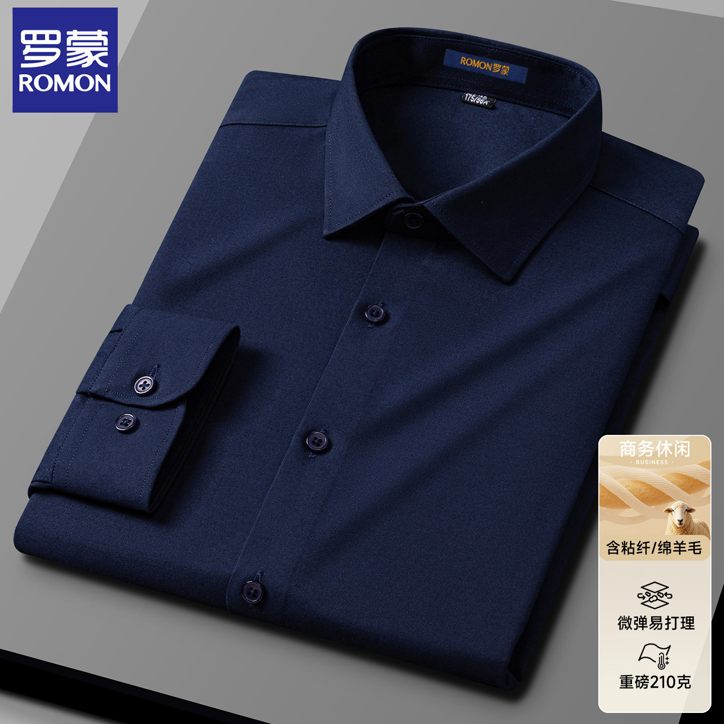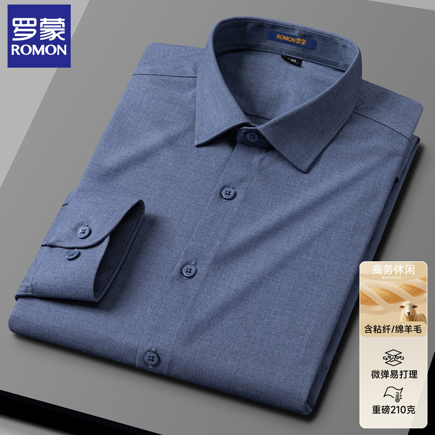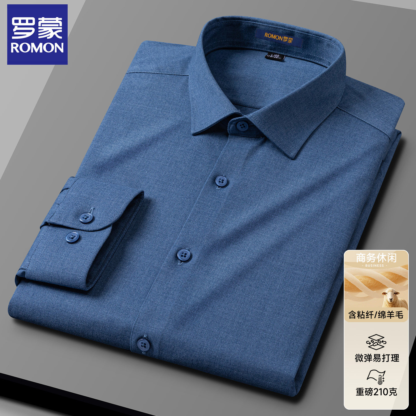 【羊毛混纺】罗蒙衬衫男秋冬打底单穿保暖羊毛上衣商务休闲衬衣