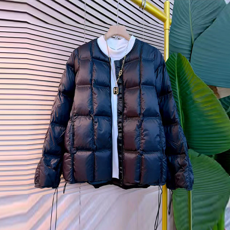 胖妹妹圆领底抽绳棉服外套2025冬季新款纯色简约百搭大码女装上衣