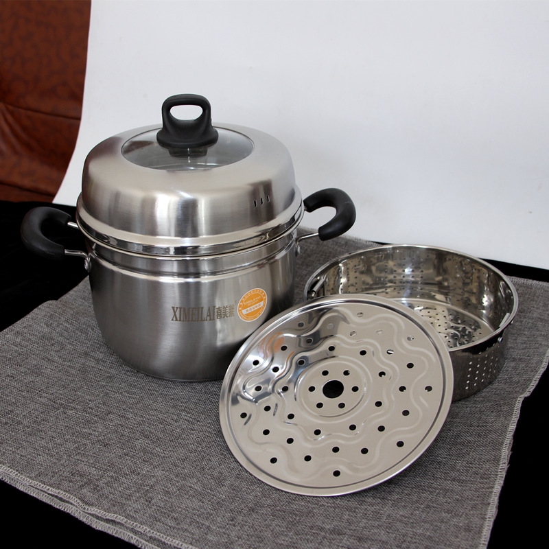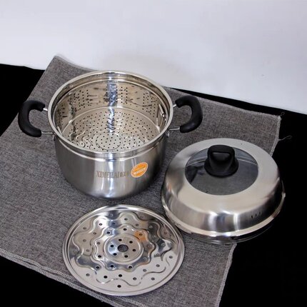 不锈钢蒸锅日式家用蒸煮脱糖蒸饭两双层隔水蒸煮锅小蒸锅多用汤锅