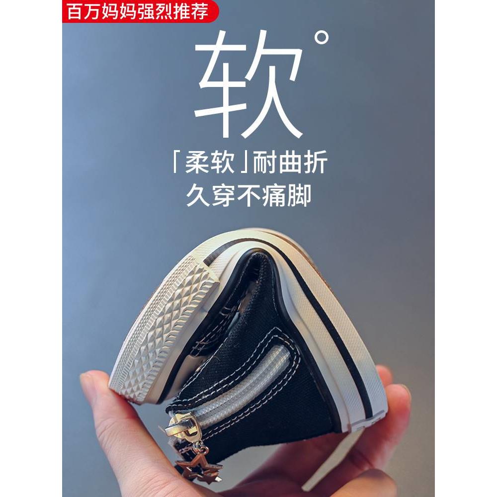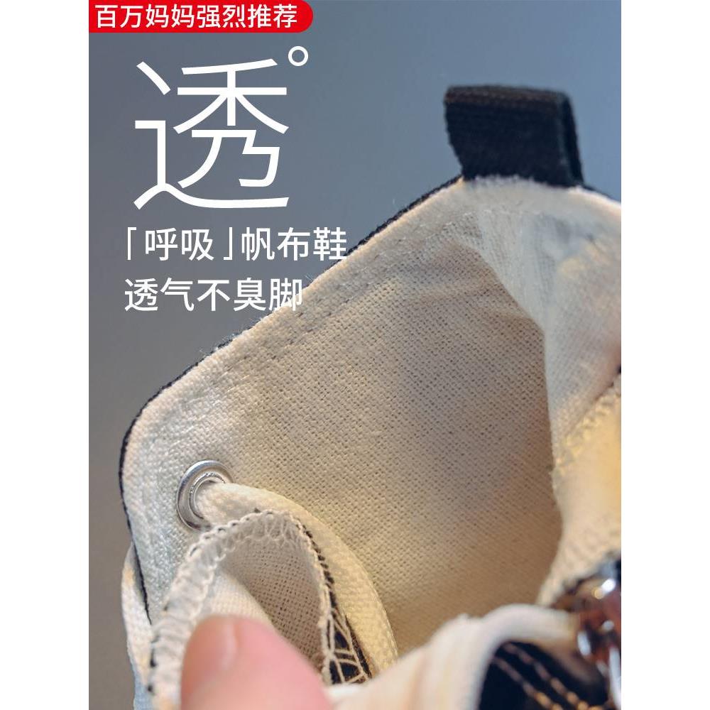 儿童帆布鞋男孩秋季高帮小白鞋男童鞋子春秋宝宝板鞋透气女童布鞋