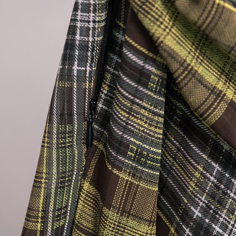大码胖mm高级感雪纺不规则格子半身裙女秋冬格纹斜边网纱中长裙子