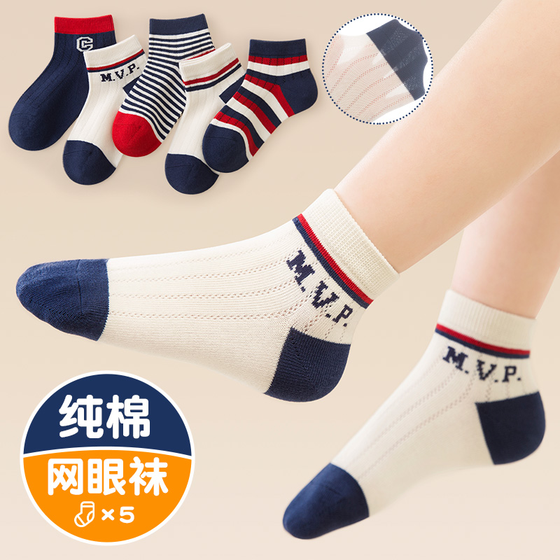 男童袜子夏季薄款短袜纯棉纱线网眼袜儿童无骨船袜男孩短筒学生袜