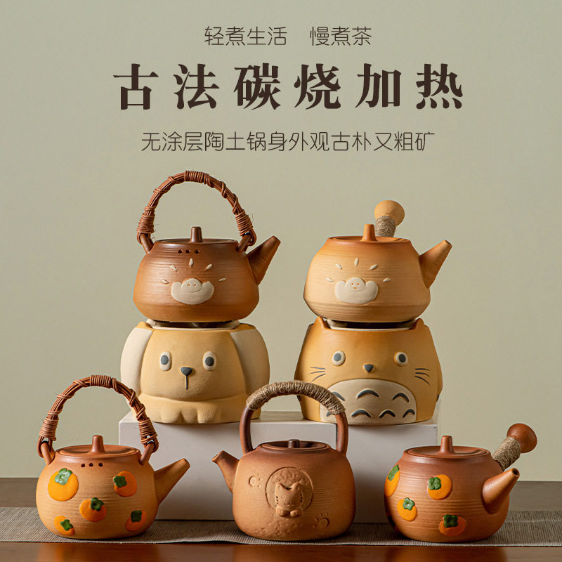 龙猫卡通可爱围炉煮茶家用茶具室内炭炉茶壶煮茶壶户外煮茶炉