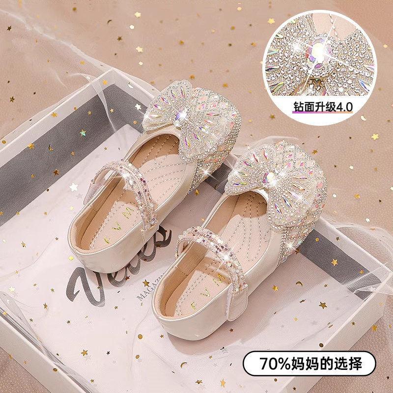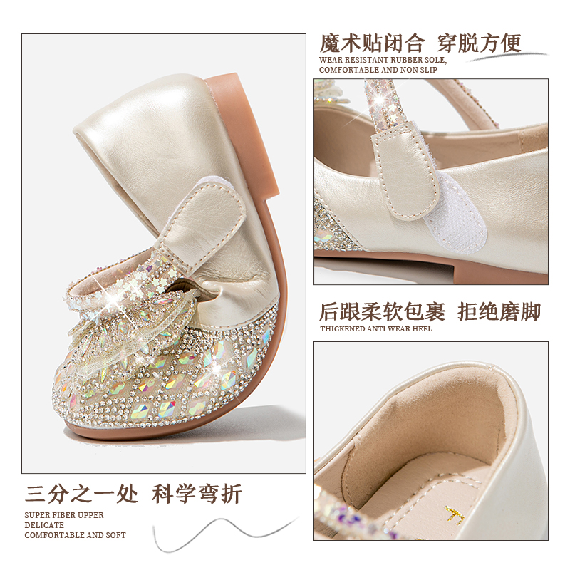 真皮女童鞋艾莎公主水晶鞋2025新款春秋儿童闪亮晶晶配礼服小皮鞋