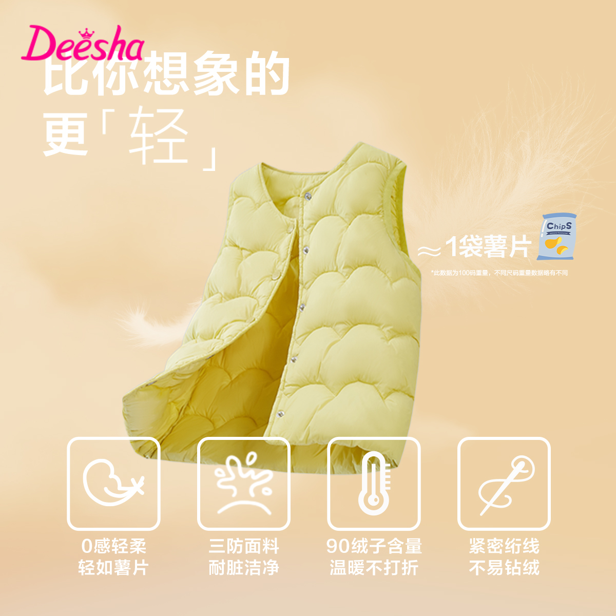 笛莎旗舰店女童羽绒马甲秋冬装新款中大童女宝宝儿童短款背心迪莎