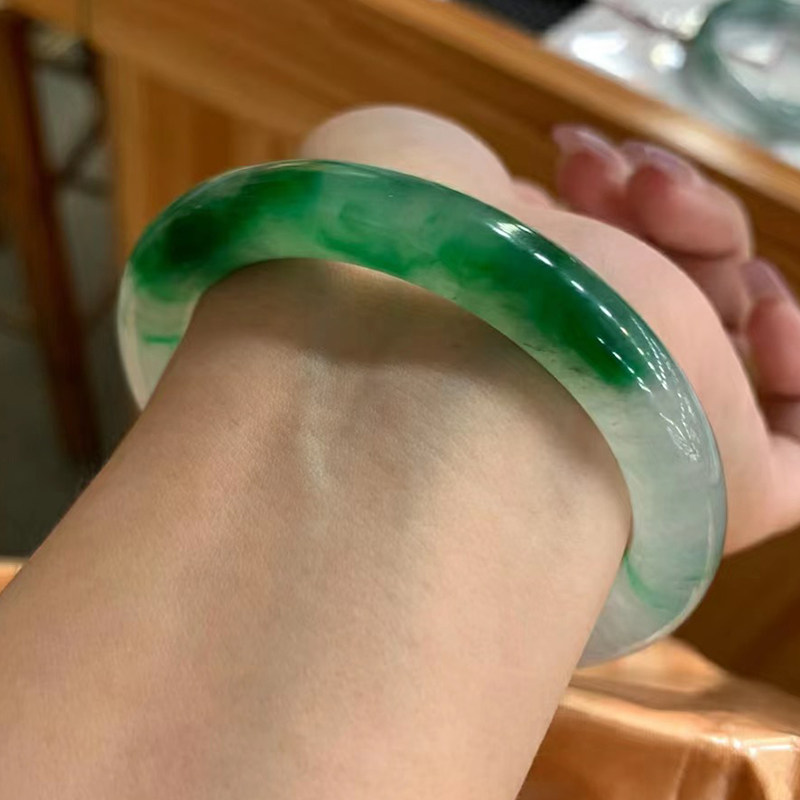 走近曼德勒缅甸天然镯子翡翠手镯正圆条翡翠手镯直播间专拍链接