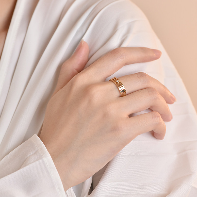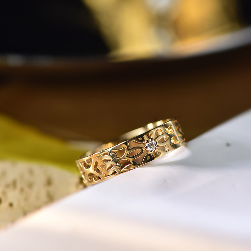 18K金钻石戒指男女款结婚对戒玫瑰金求婚钻戒复古轻奢镂空戒指X特