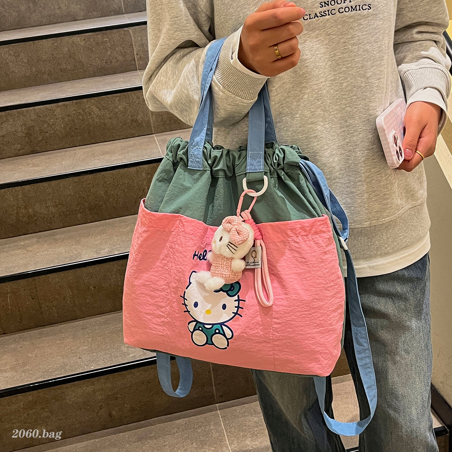 日系可爱卡通图案尼龙手提双肩包女2025秋冬新款轻便束口袋背包