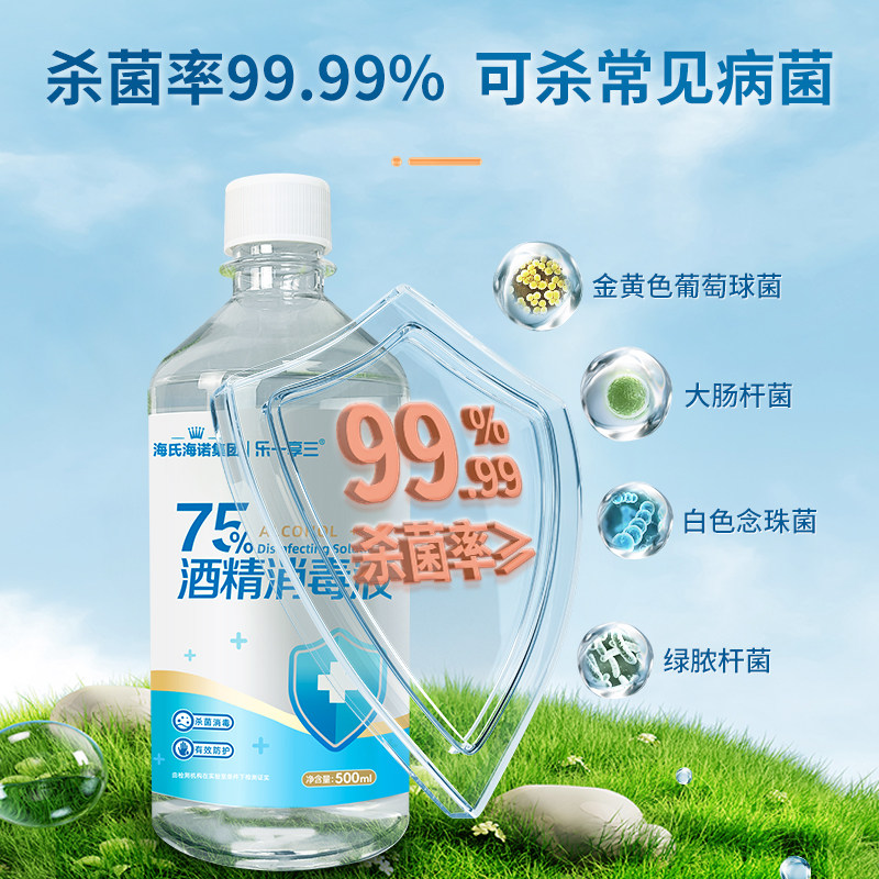 海氏海诺75%医用酒精喷雾消毒水消毒液家用杀菌室内75度500ml大瓶