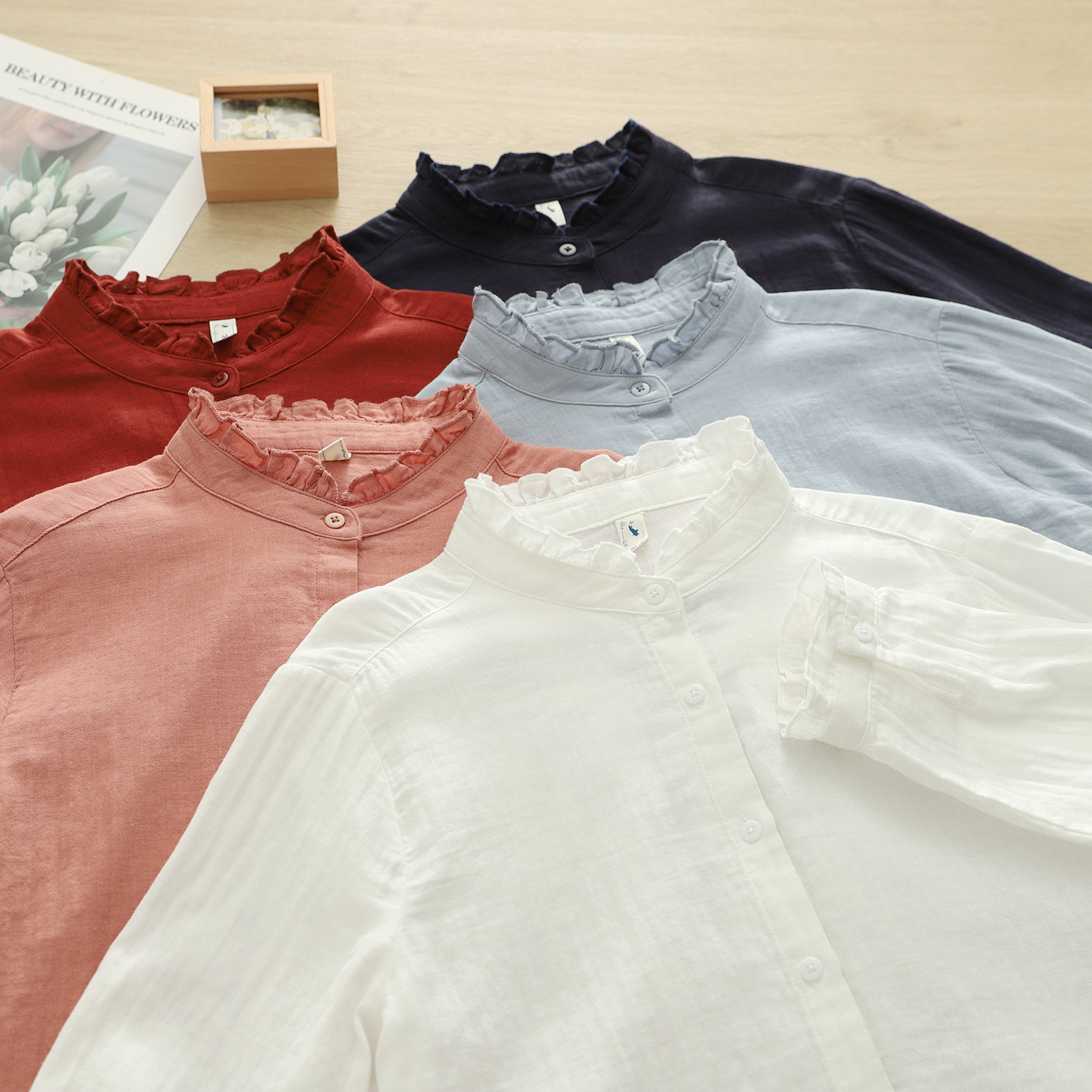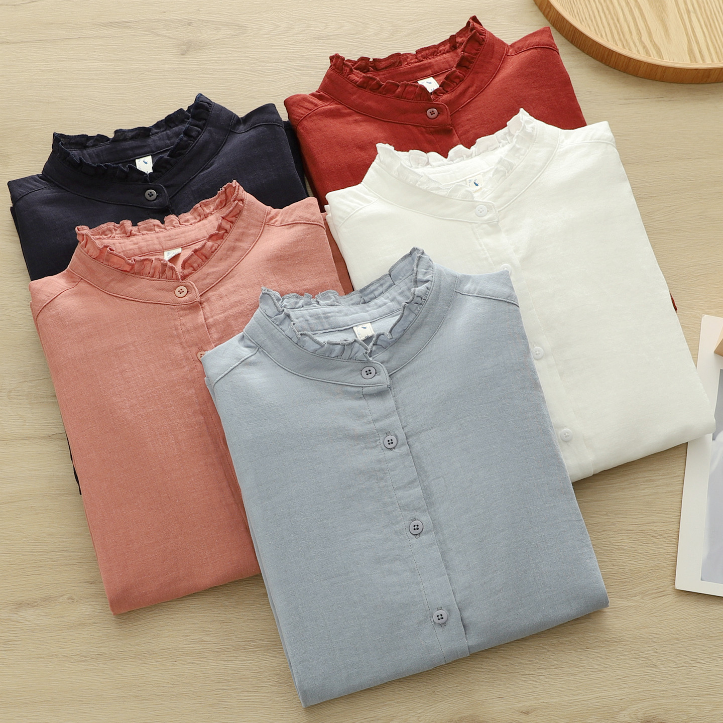 2025秋季文艺小清新木耳花边立领双层棉纱白衬衫女长袖打底衫学生