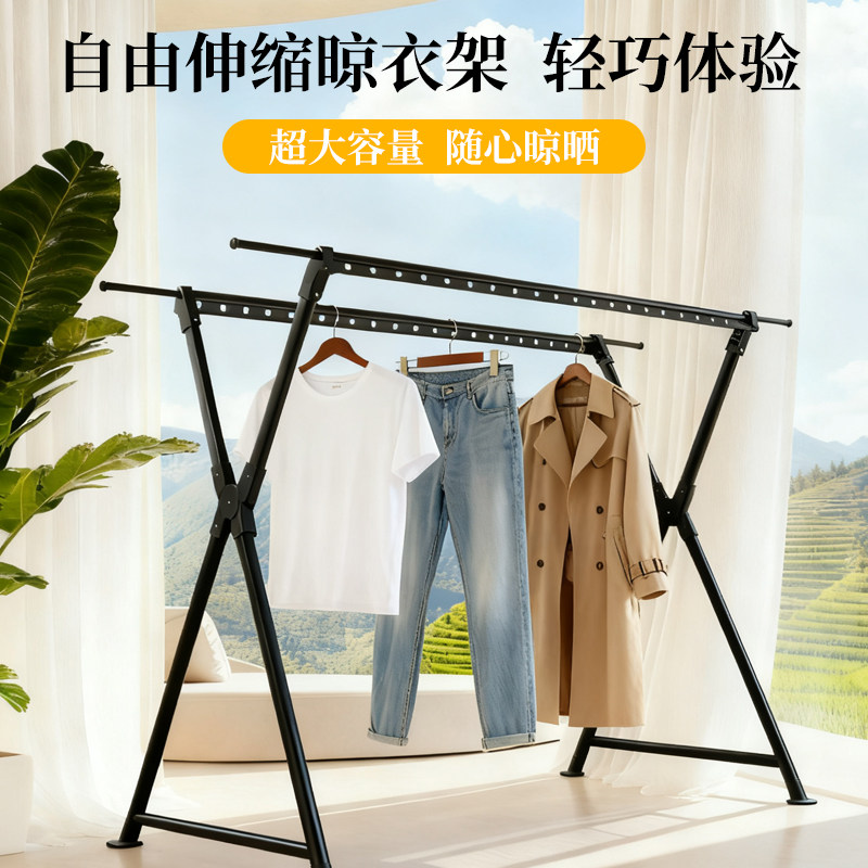 晾衣架家用室内衣服伸缩杆卧室阳台室外凉支架晒被子神器落地折叠