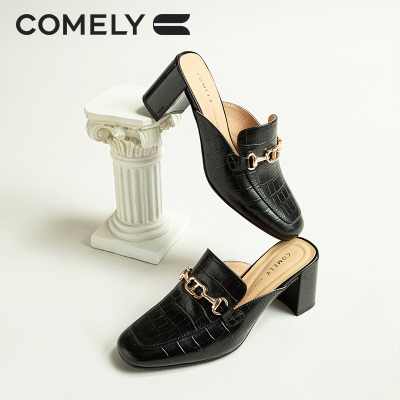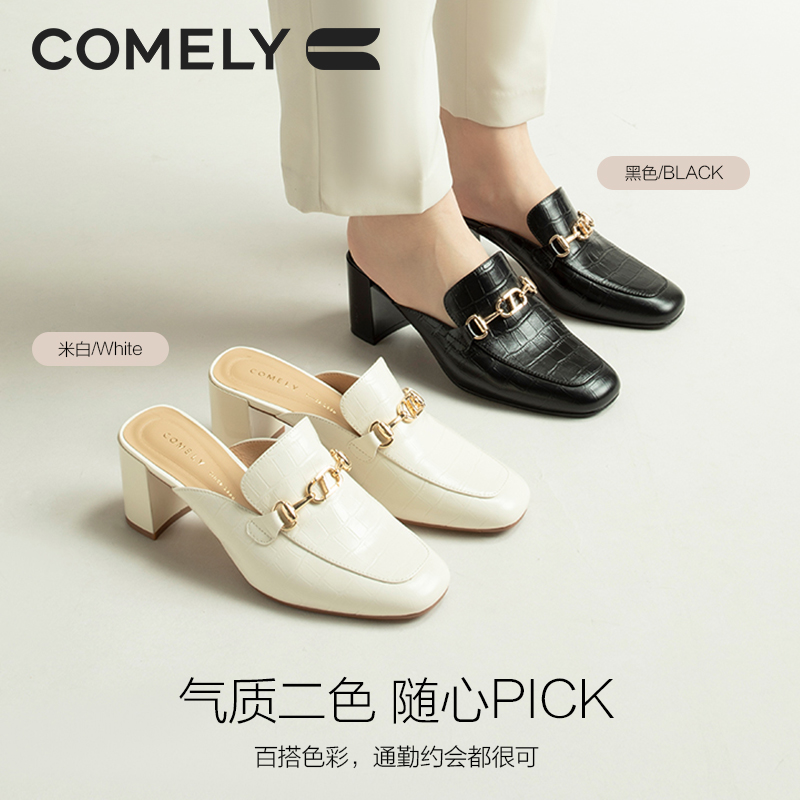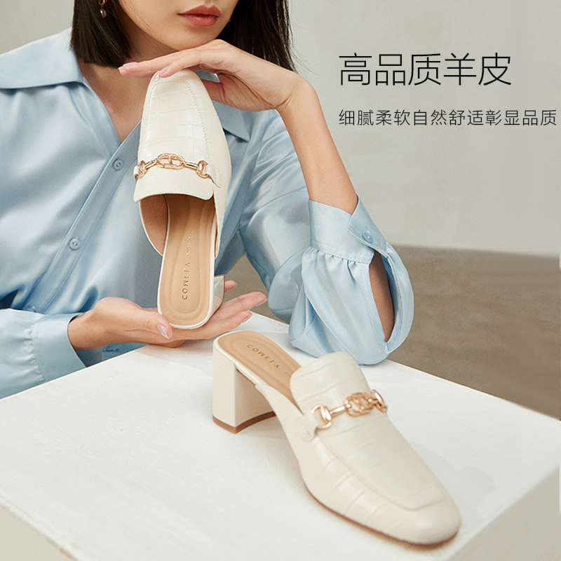 春季粗跟半拖鞋康莉穆勒拖鞋