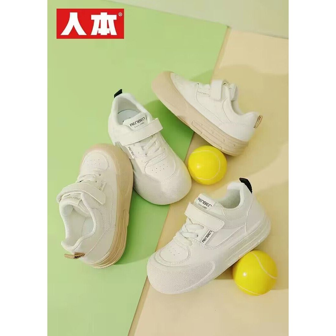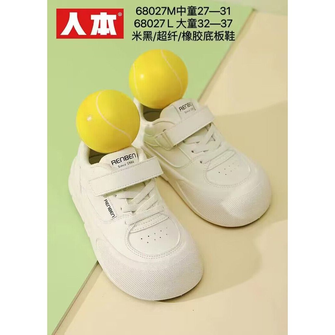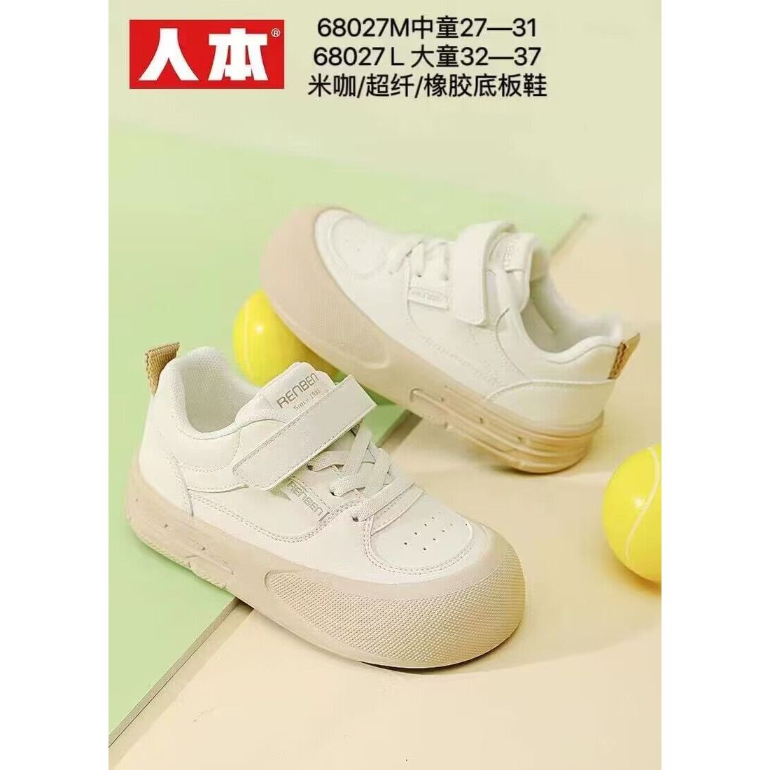 白色秋款低帮儿童休闲鞋子人本