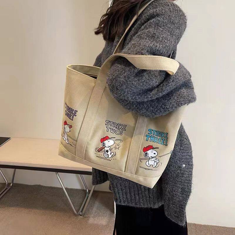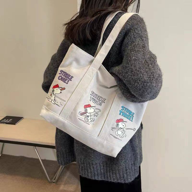 加工卡通史努比印花帆布包大容量腋下托特包妈咪包手提单肩购物袋