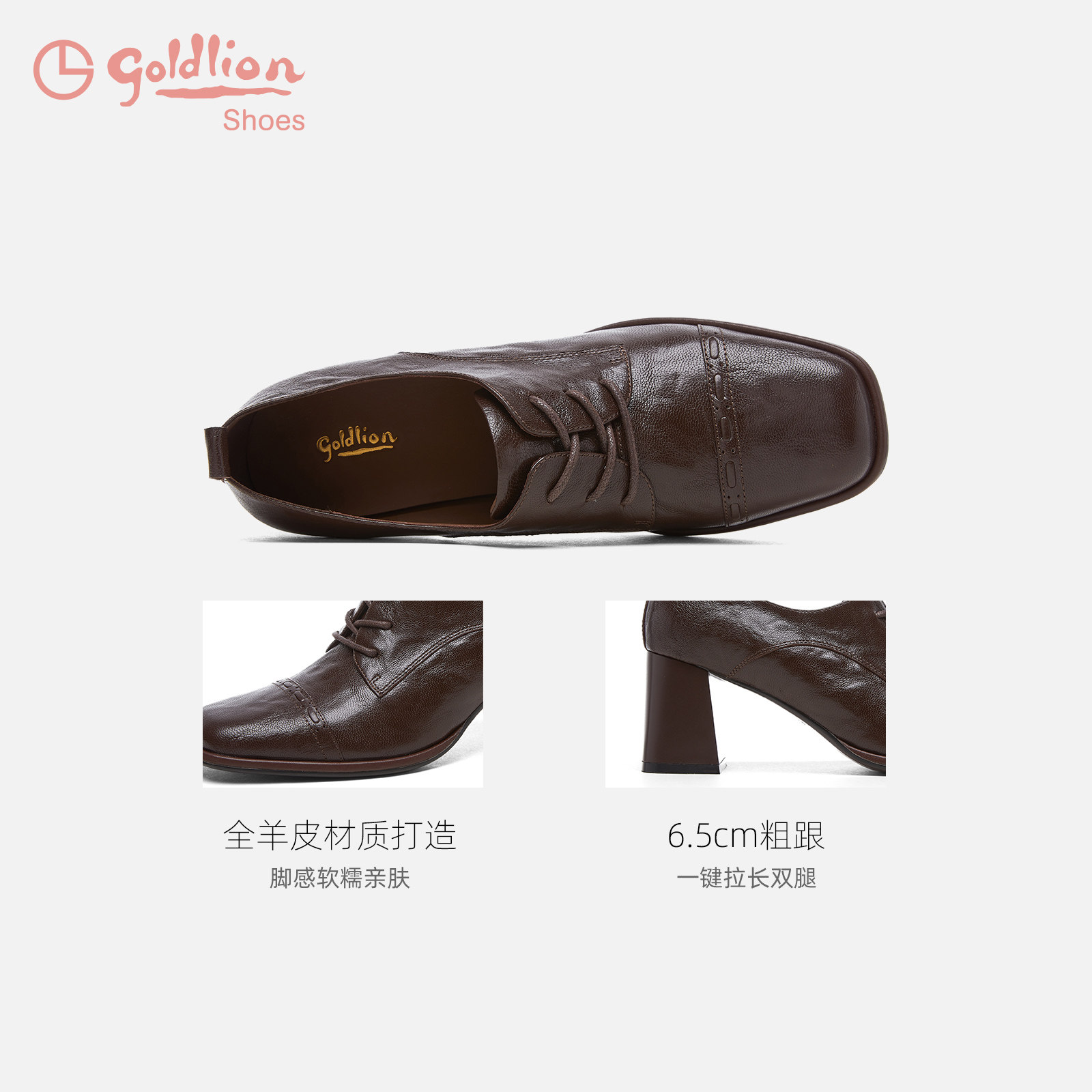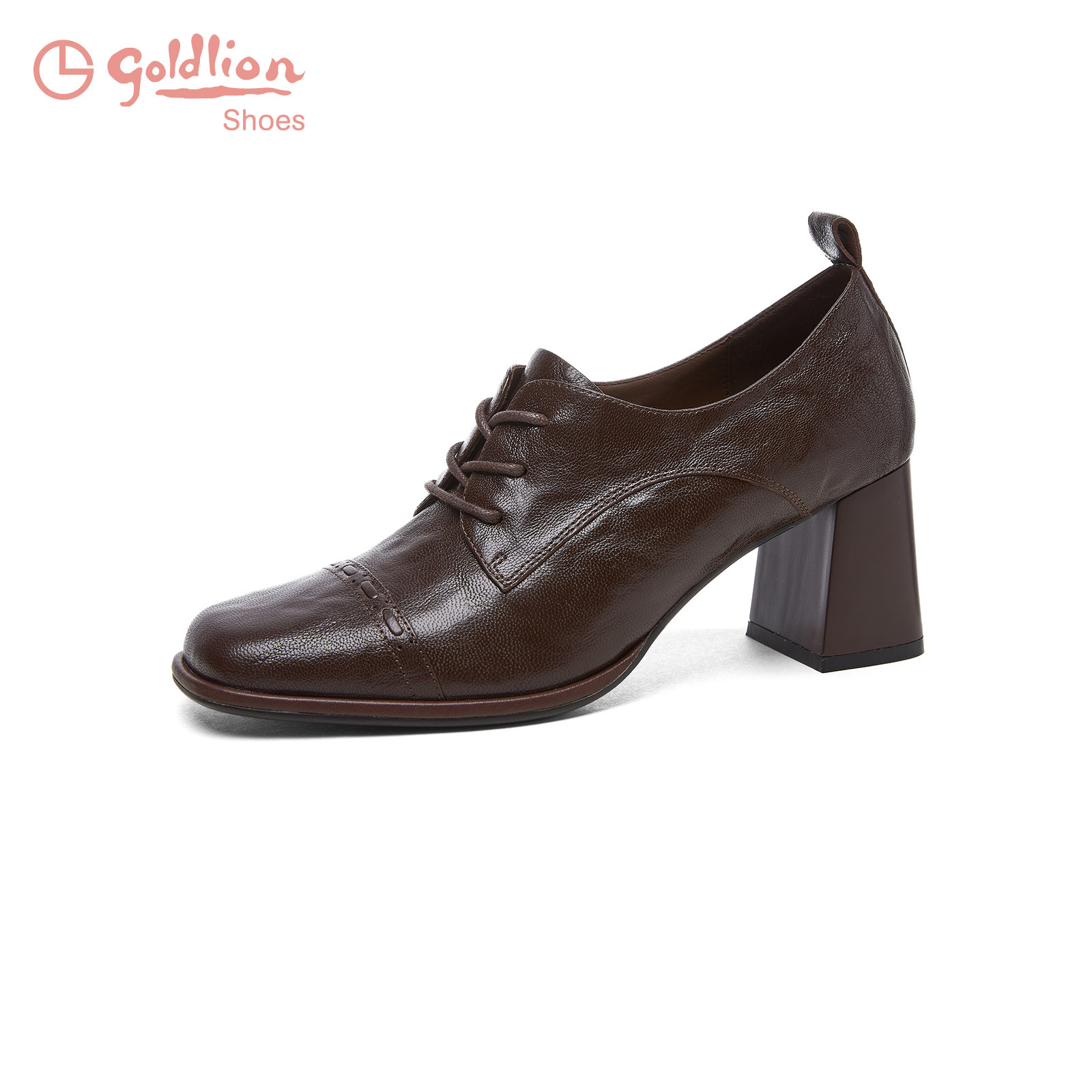 金利来粗跟小皮鞋女2025秋季新款女鞋复古手抓纹通勤高跟深口单鞋