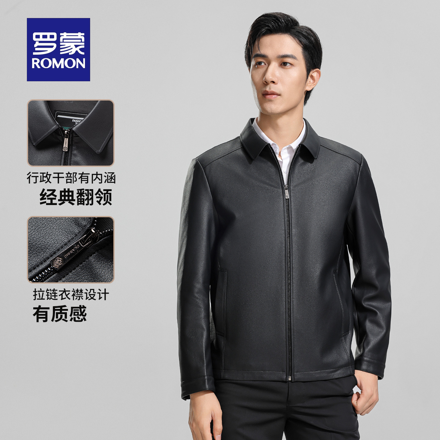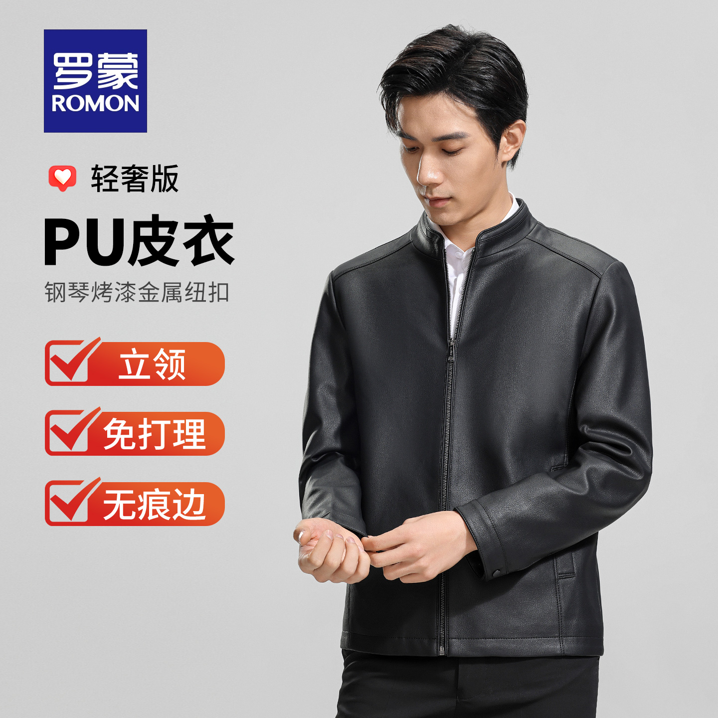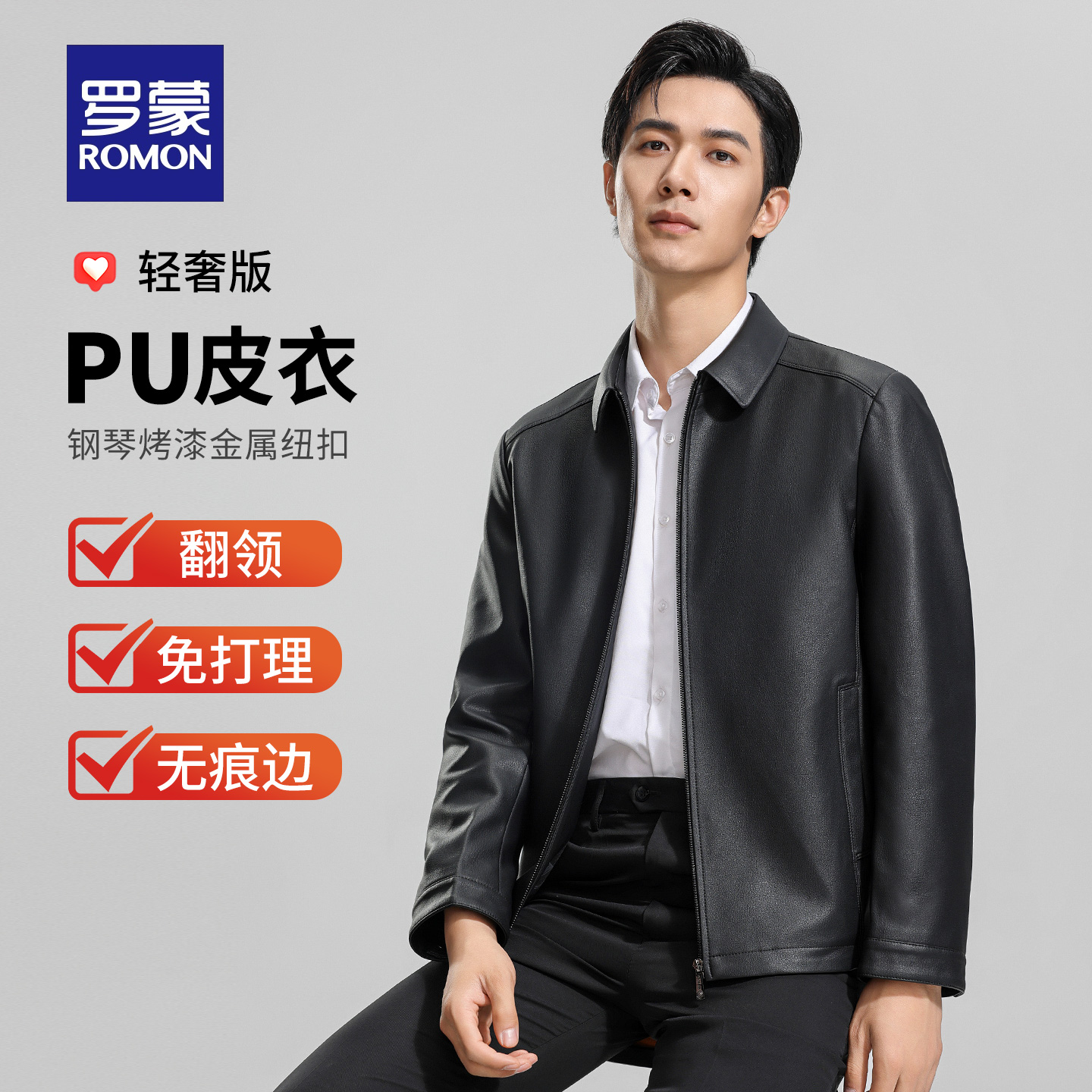 罗蒙男士宽松百搭商务短款PU皮衣2025秋季新款时尚舒适夹克外套男
