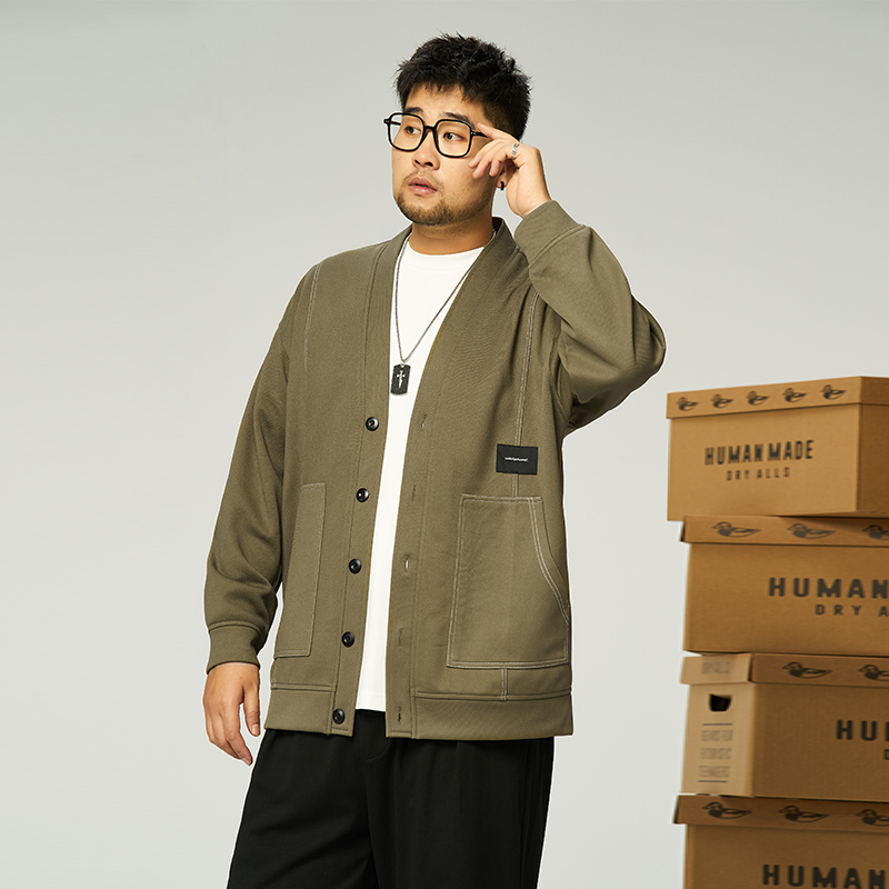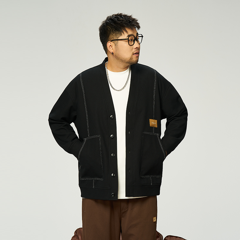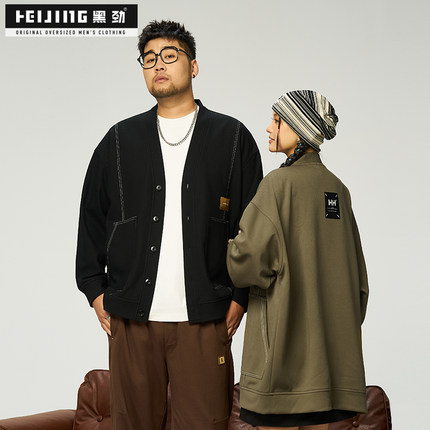 黑劲大码男装开衫外套春季胖子加肥加大宽松潮流明线肥佬夹克