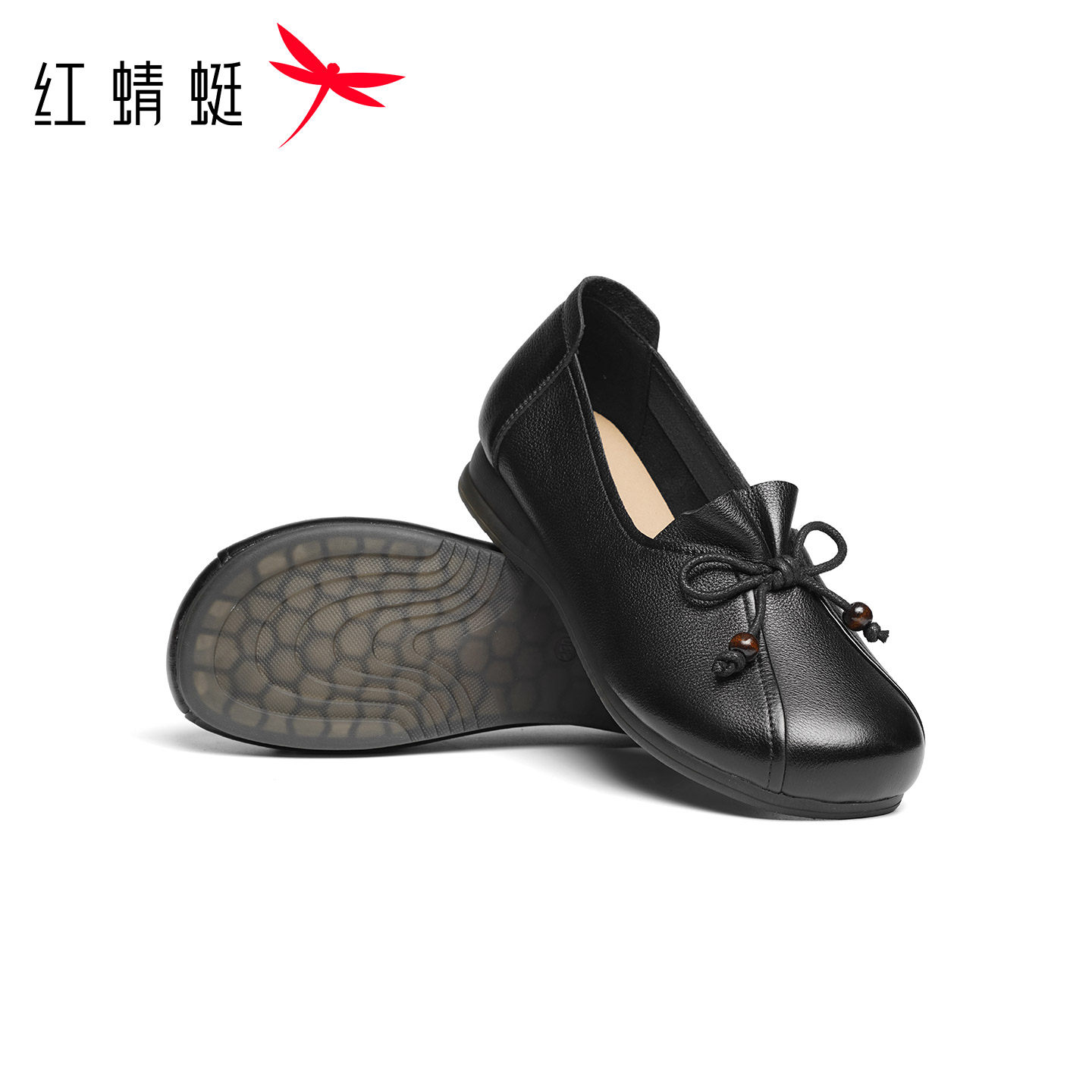 红蜻蜓妈妈单鞋真皮软底皮鞋