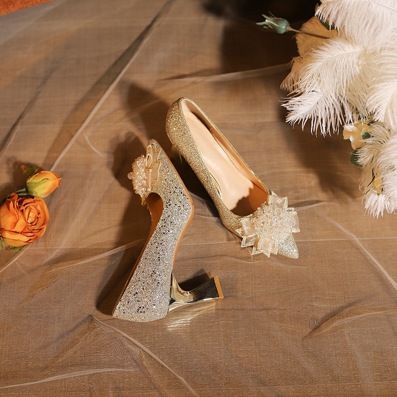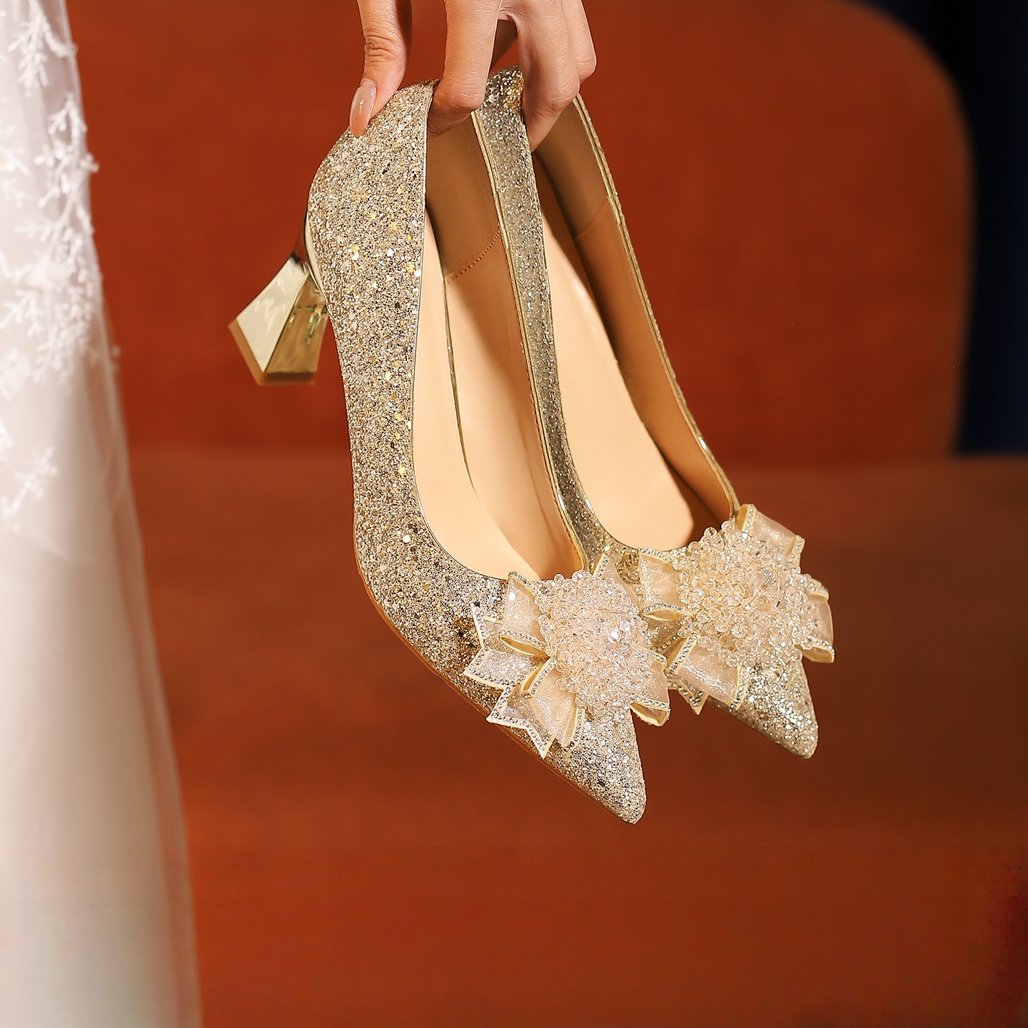 绝美婚鞋女2025新款主婚纱新娘鞋水晶鞋日常可穿粗跟不累脚高跟鞋