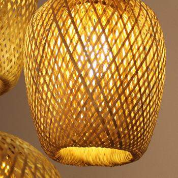 餐厅吊灯简约创意田园竹编艺术书房卧室过道新中式阳台玄关三头灯