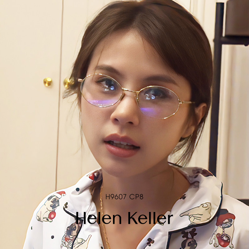 海伦凯勒豆豆同款眼镜框女大脸超轻钛合金细框猫眼平光镜架H9607