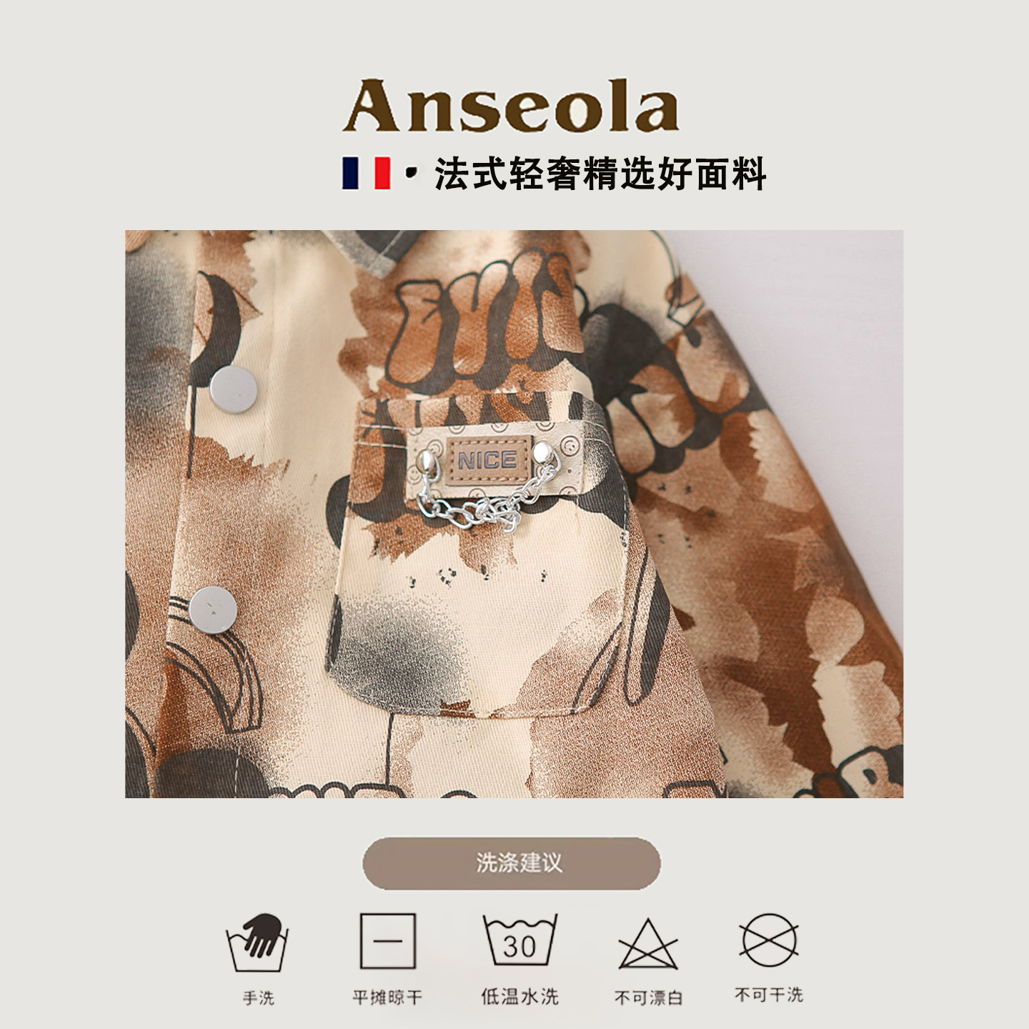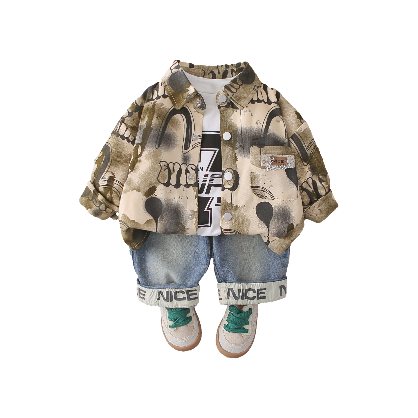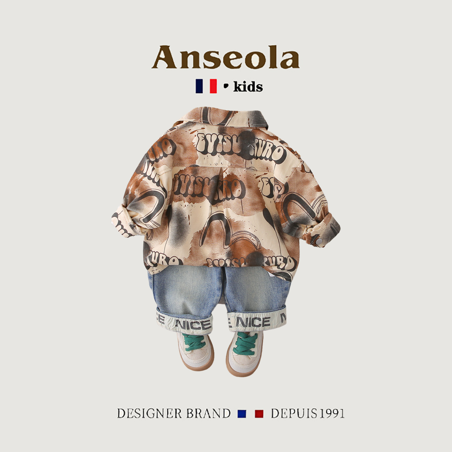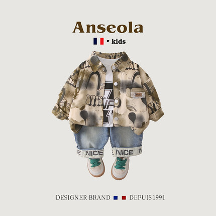 法国ANSEOLA男童春秋款帅气套装儿童男宝宝洋气外套牛仔裤三件套