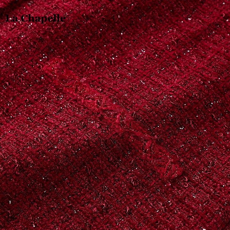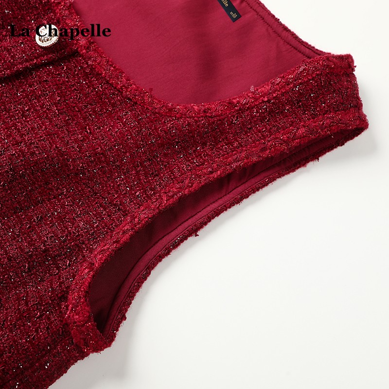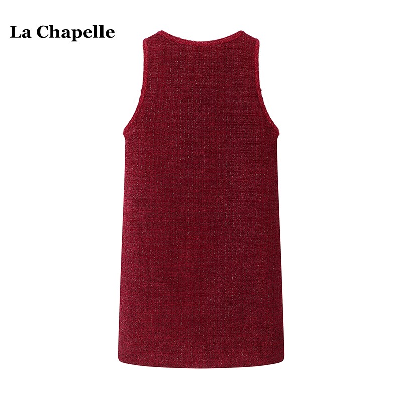 拉夏贝尔/La Chapelle小香风红色背心连衣裙女冬季新款粗花呢短裙