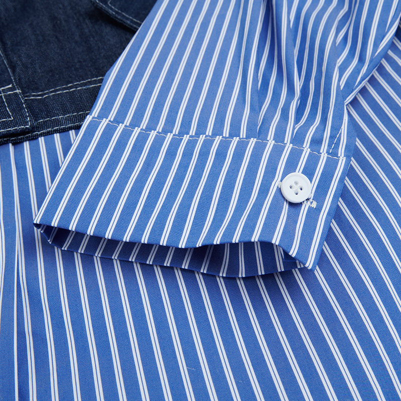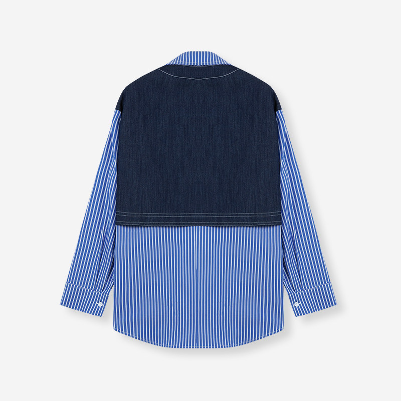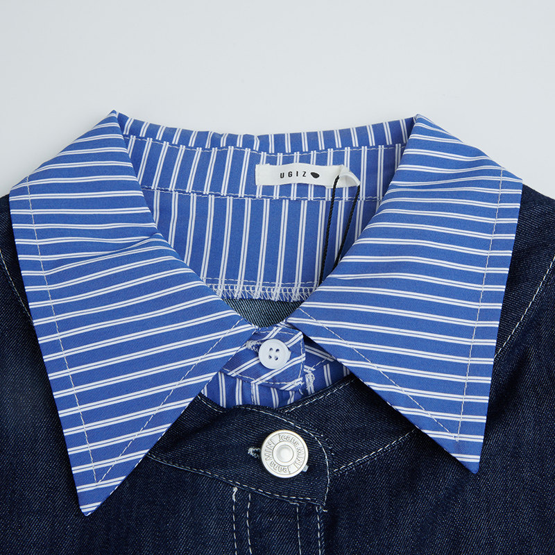 UGIZ2025年春季新品商场同款韩版牛仔拼接假两件衬衫女UASJ843