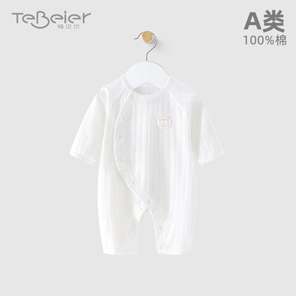 婴儿连体衣夏季长袖新生儿衣服纯棉a类52码宝宝哈衣爬服薄款夏装