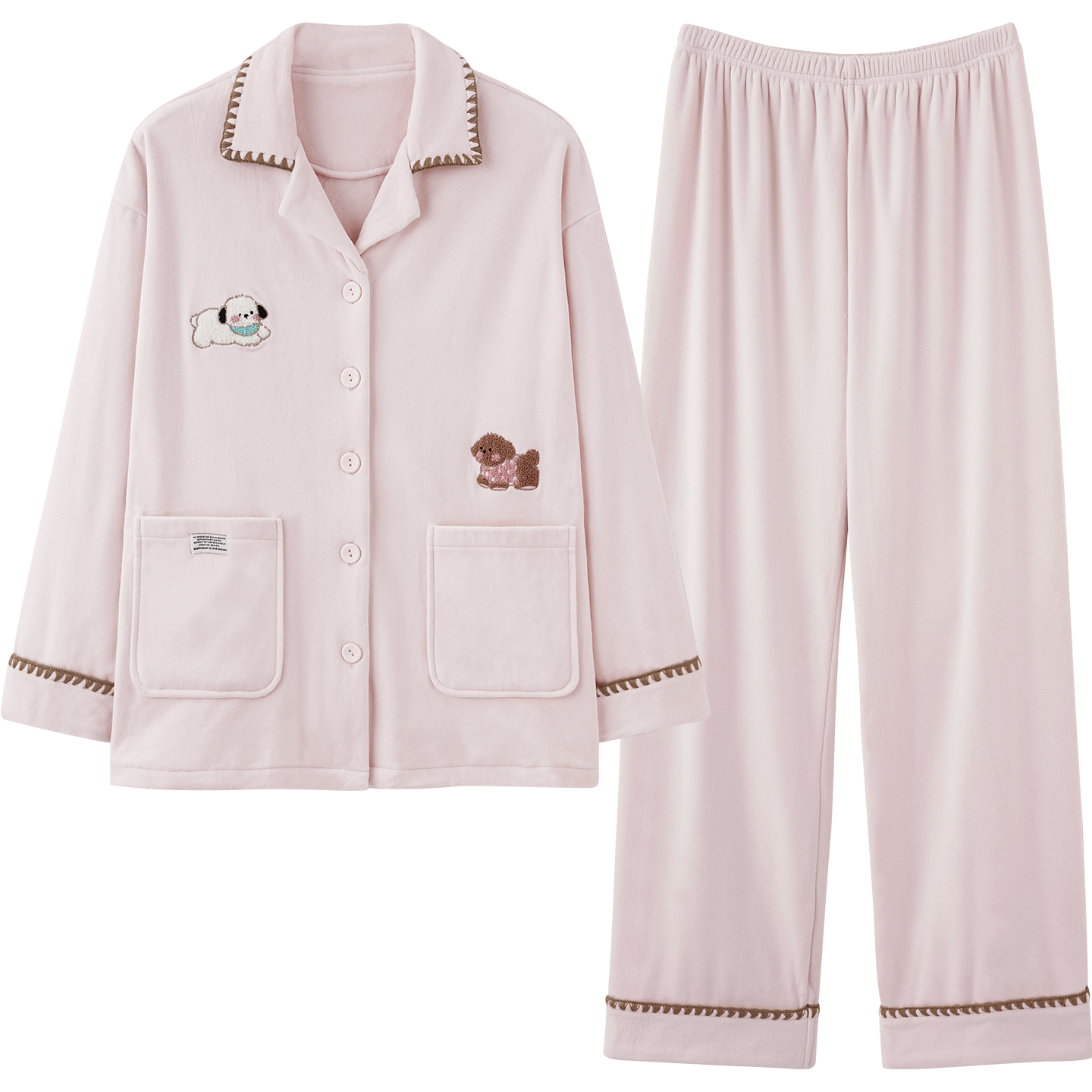 马克公主秋冬情侣家居服女可爱卡通海岛绒睡衣男保暖柔软薄绒套装