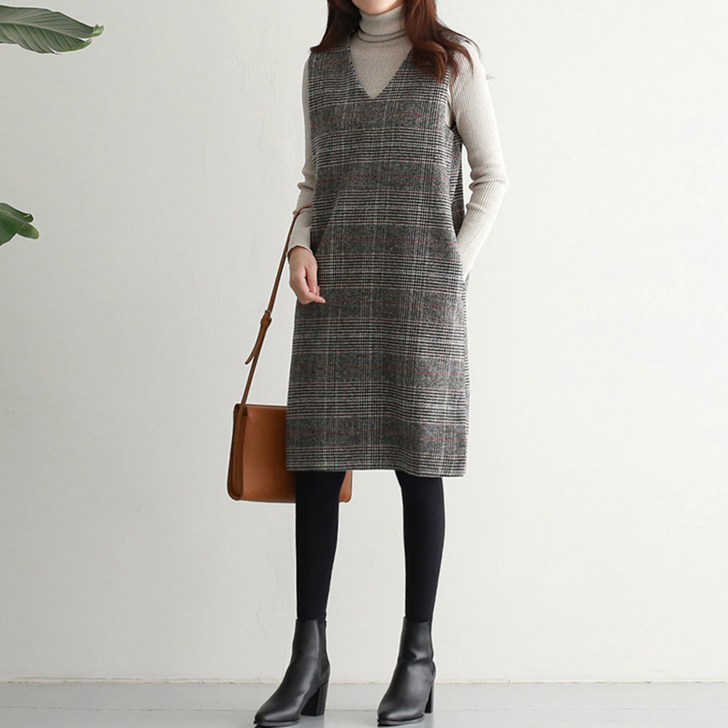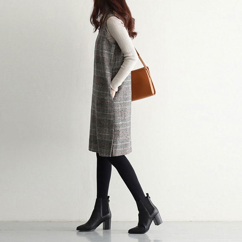 2024秋冬新款大码千鸟格毛呢背心裙胖mm中长款韩版格子无袖连衣裙