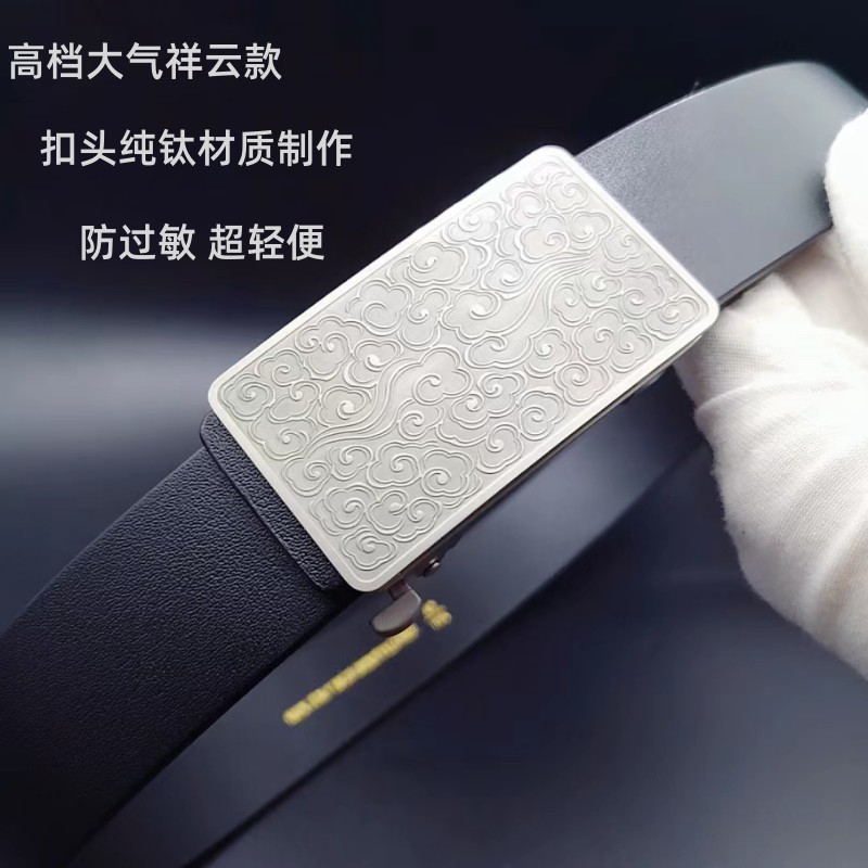 纯钛皮带扣头内穿男士无牙自动扣 防过敏钛合金商务头层牛皮腰带