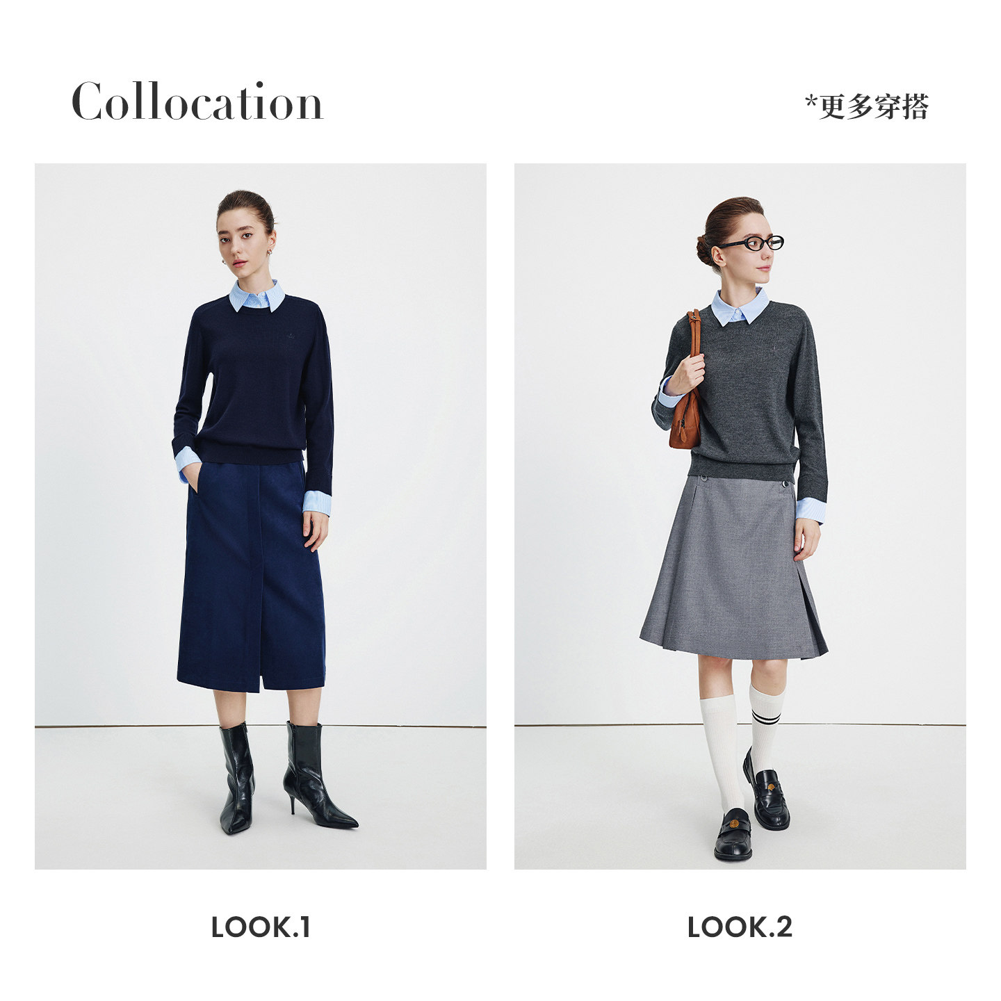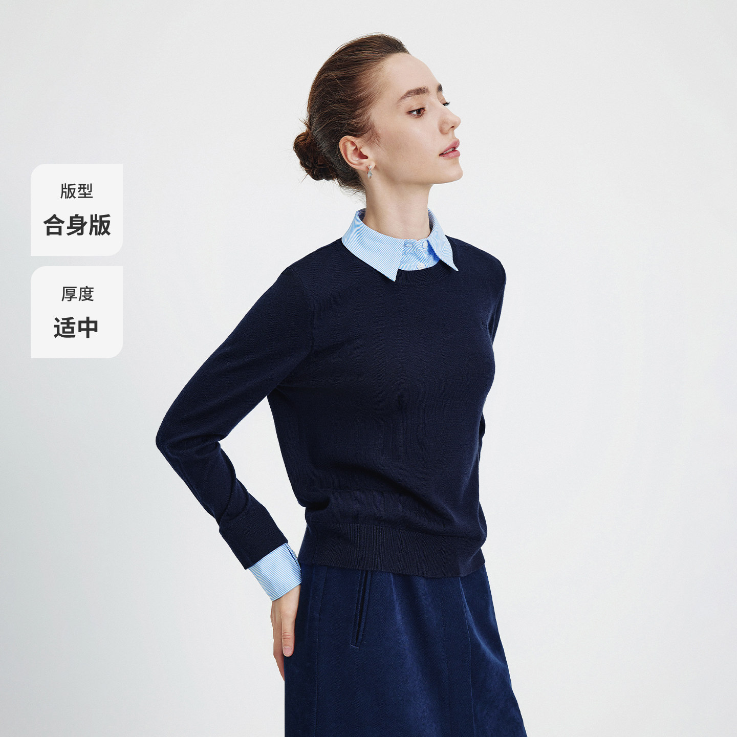 【纯羊毛】Navigare意大利小帆船假两件毛衣女秋季短款通勤针织衫