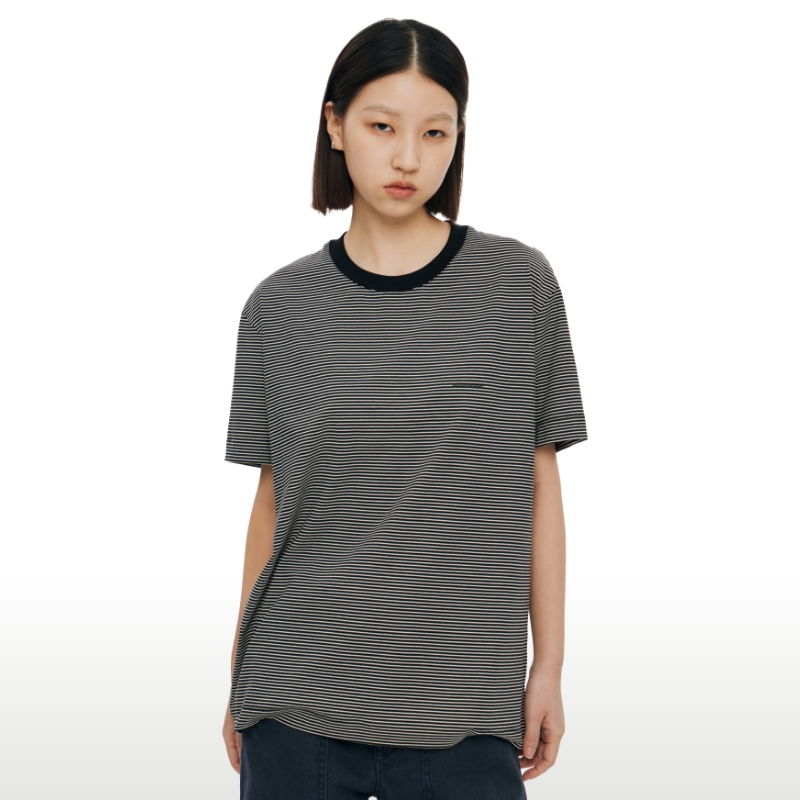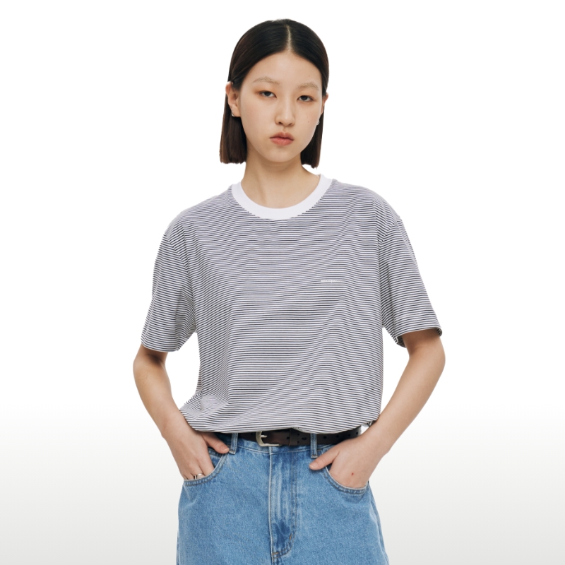 WassupHouse条纹正肩短袖T恤男女同款日系宽松条纹休闲百搭情侣t