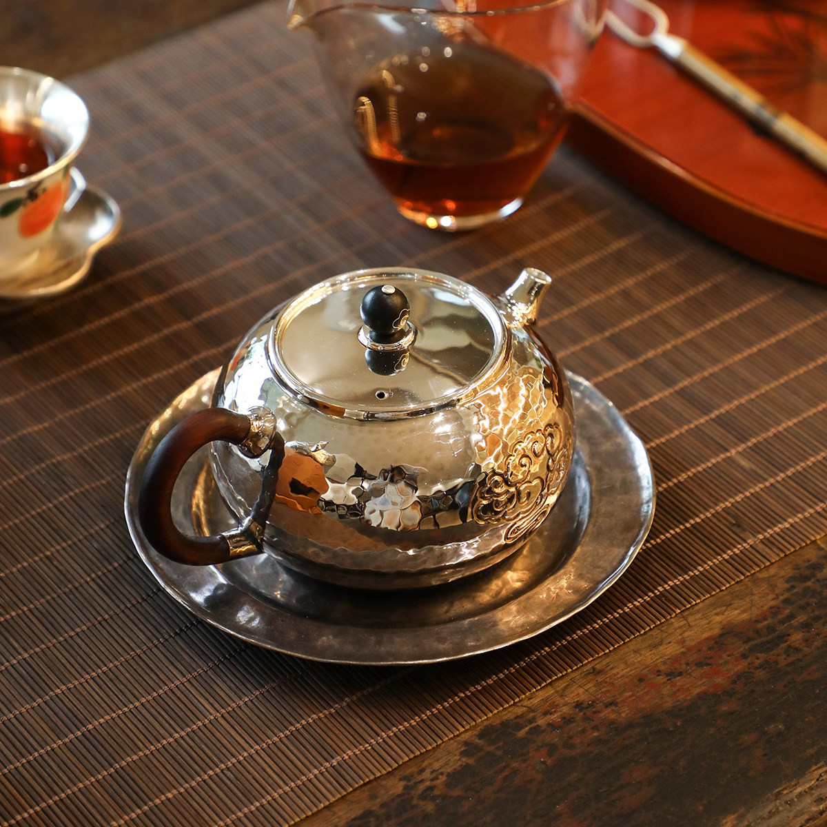 纯银时代 银壶足银999茶壶手工錾刻祥云纹泡茶壶送礼长辈270ml