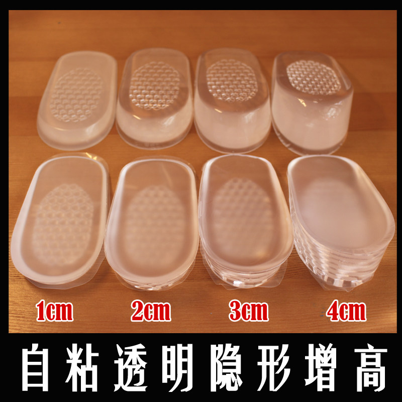 出口日本韩国1/2/3/4厘米硅胶内增高鞋垫半 男女透明隐形自粘防滑