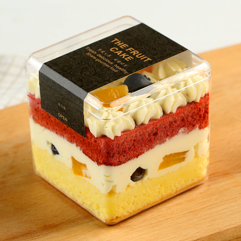 长方形塑料透明慕斯盒曲奇饼干罐水果千层豆乳蛋糕包装盒子一次性