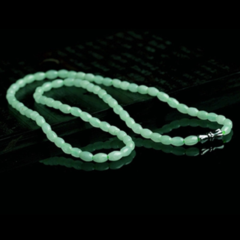 包邮天然翡翠A货玉珠子项链女款玉石路路通挂玉链女圆珠编织挂绳