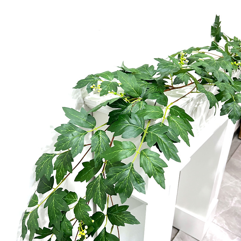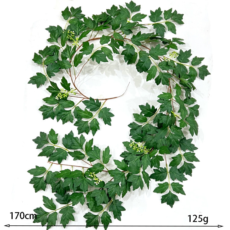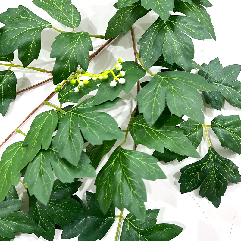 跨境丰收节秋色挂饰仿真藤条绿枫叶植物浆果装饰假花藤蔓缠绕藤条