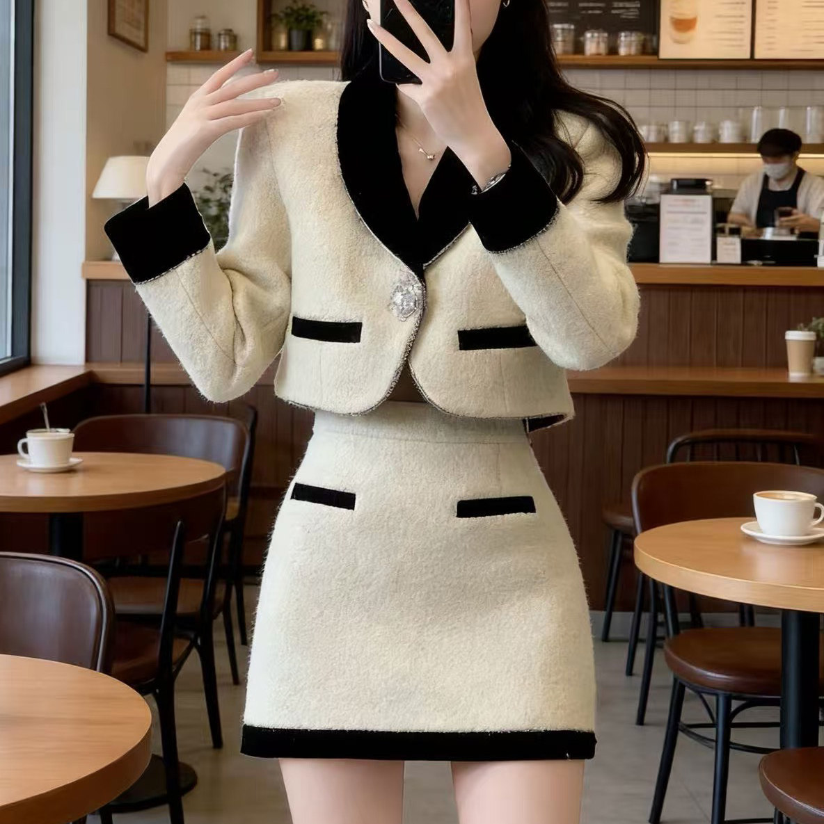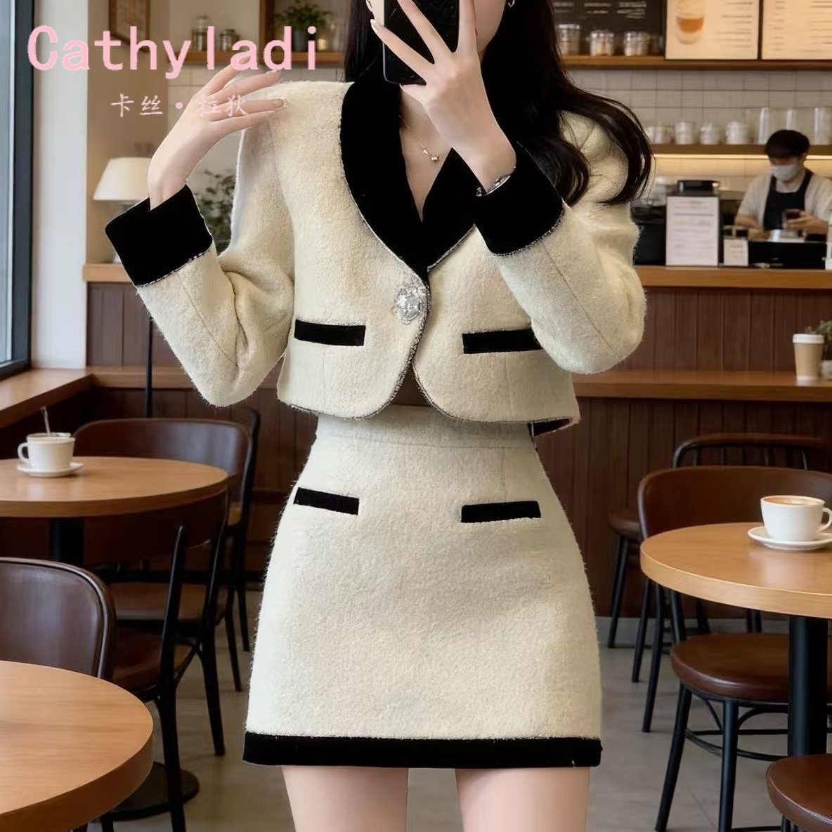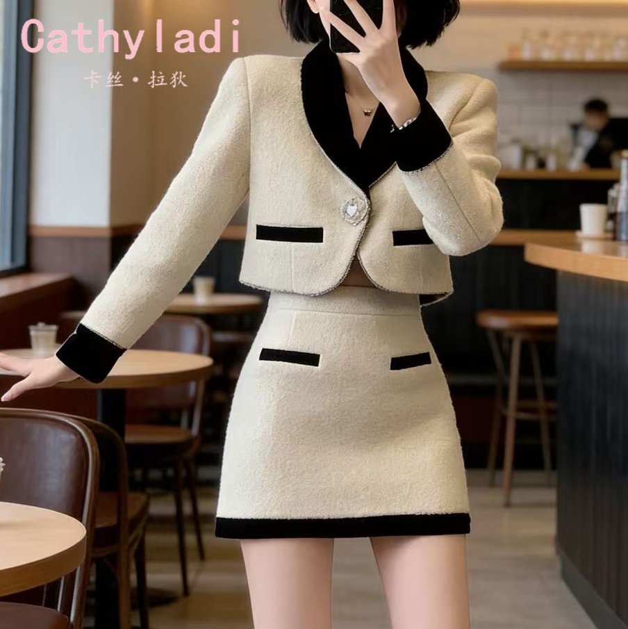 CATHYLADI千金感复古小香风套装2026年冬季名媛外套半身裙两件套