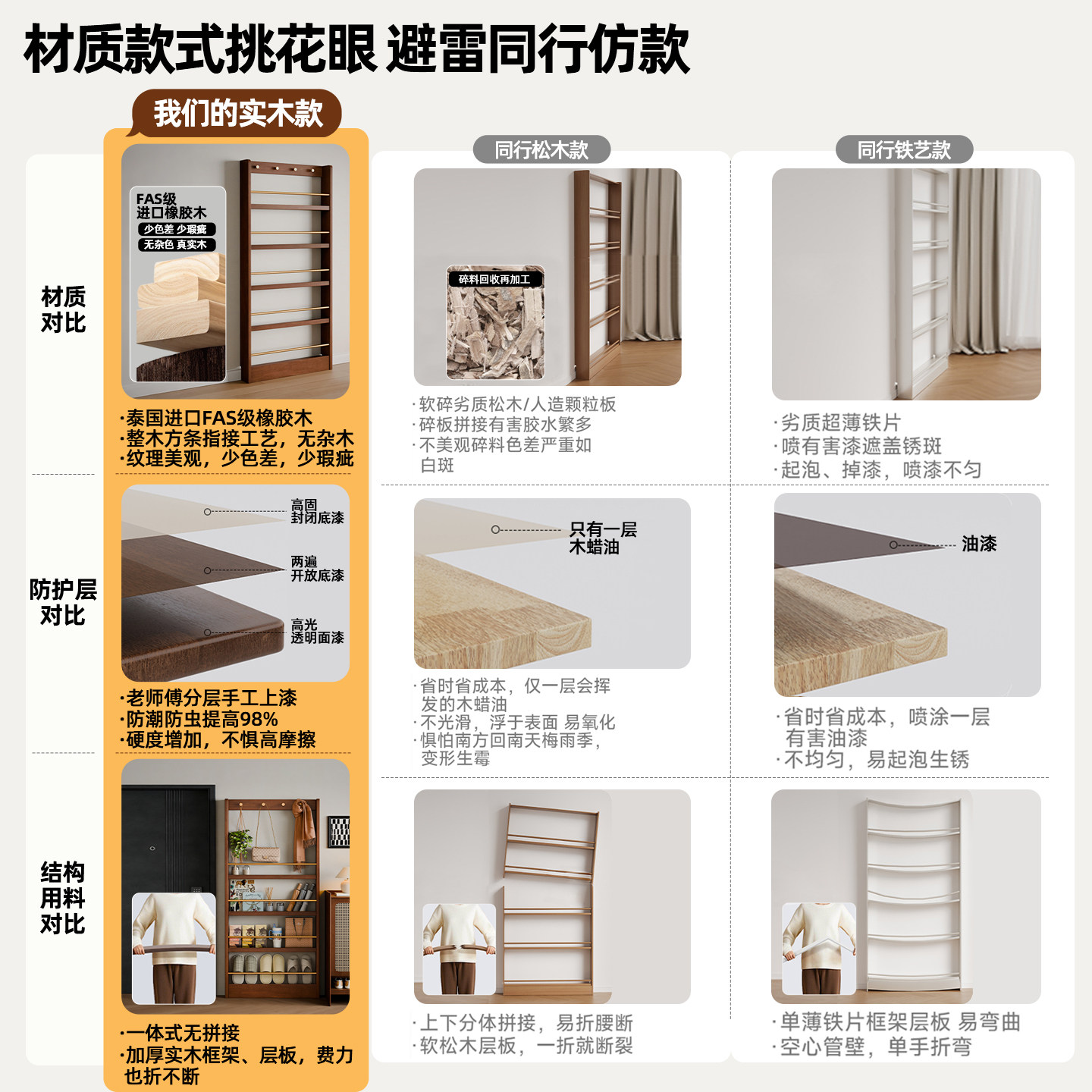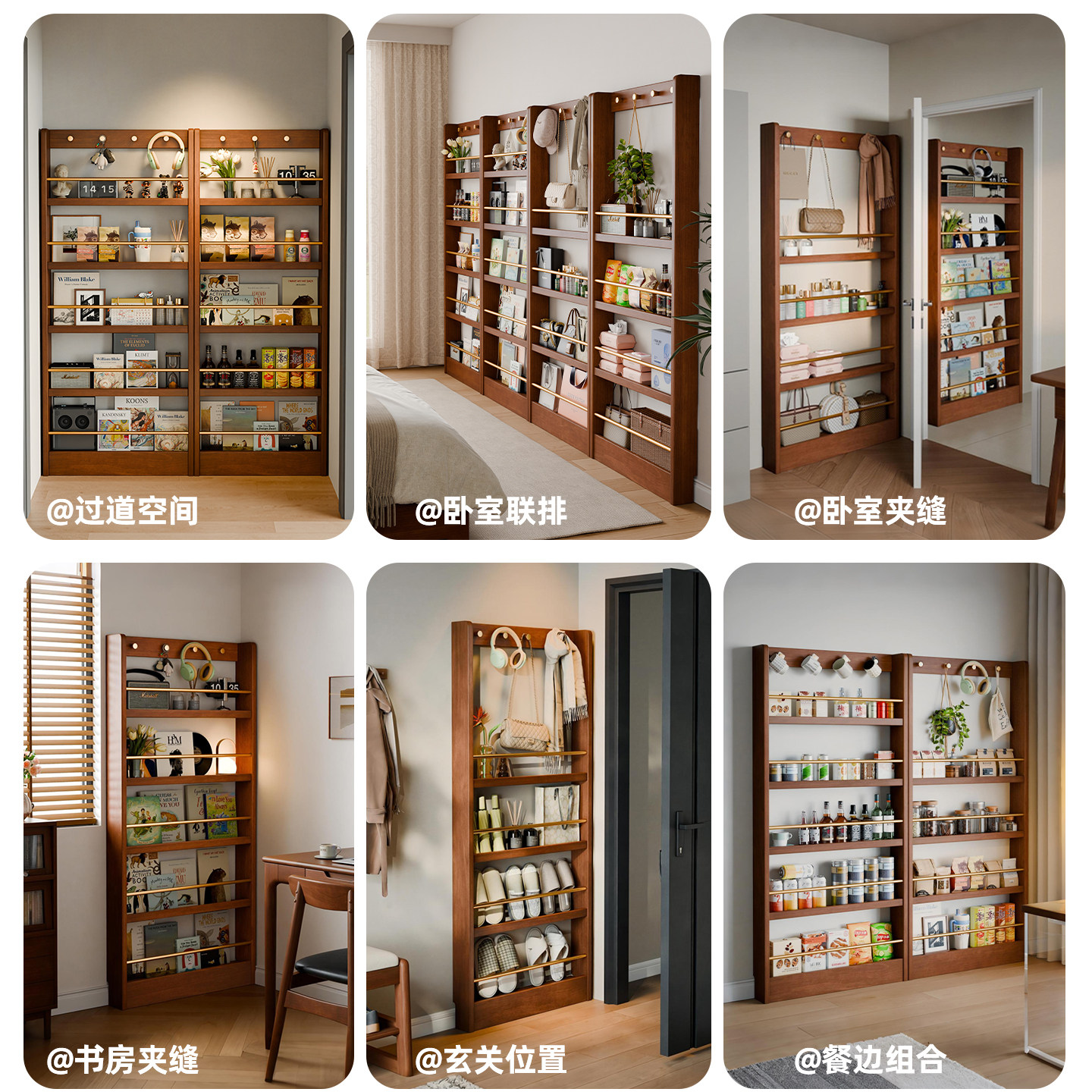 全实木门后置物架超薄窄款卧室落地多层玄关收纳架靠墙上客厅书架