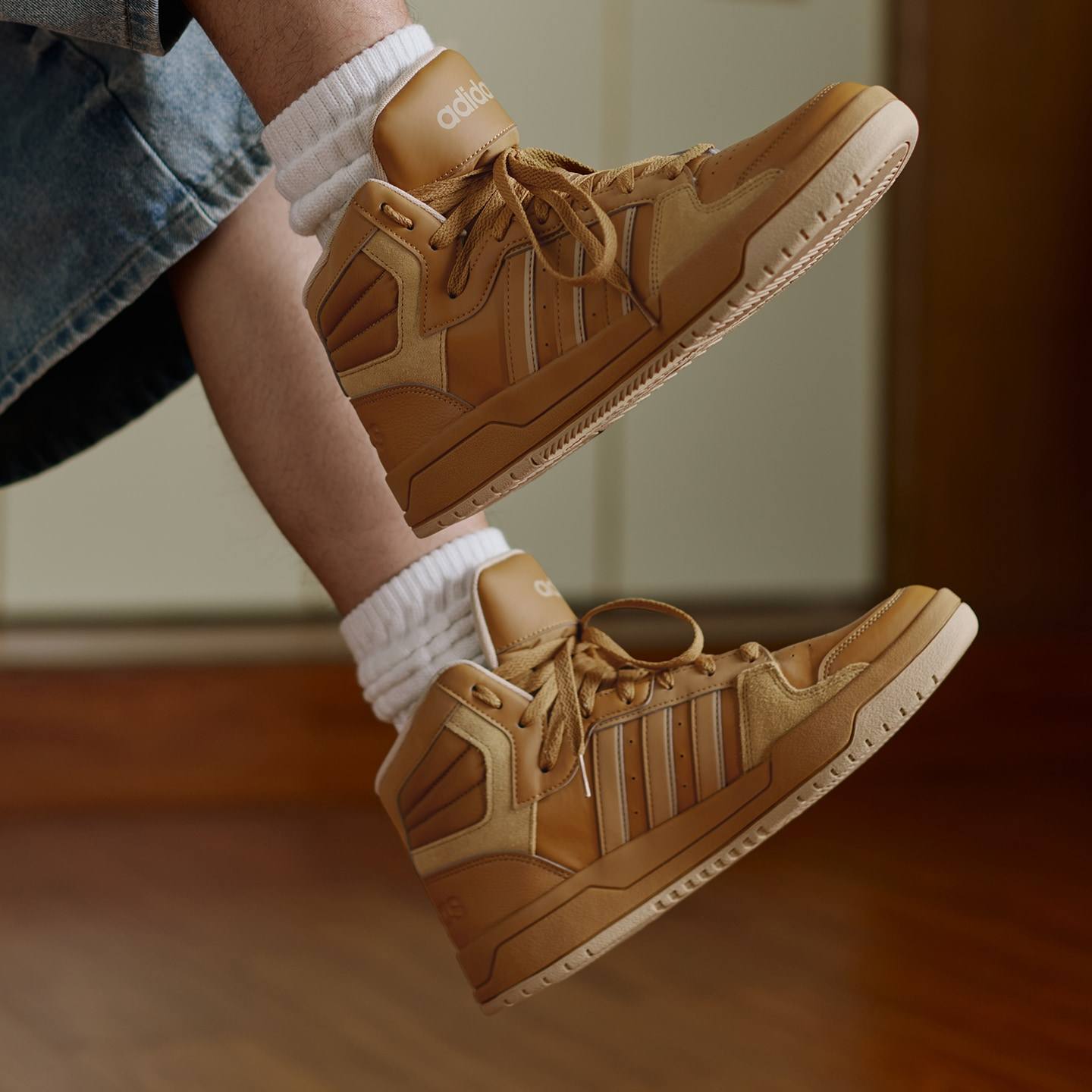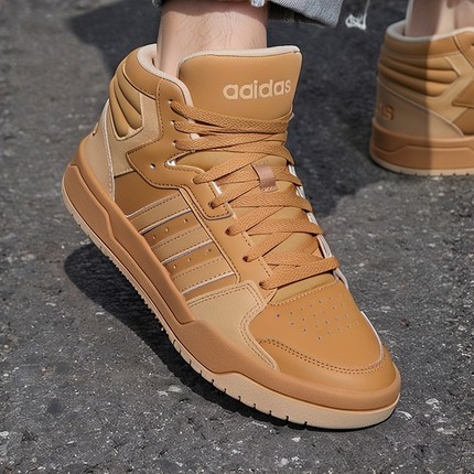 阿迪达斯高帮男鞋冬季新款小麦色复古篮球休闲鞋ENTRAPMID板鞋男