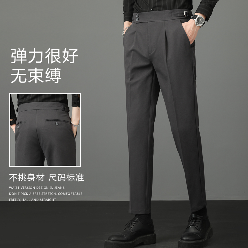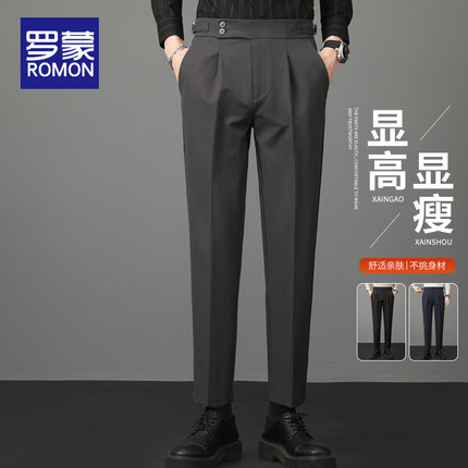 罗蒙休闲裤男士春秋季修身小脚西裤2025新款潮流宽松直筒长裤子男