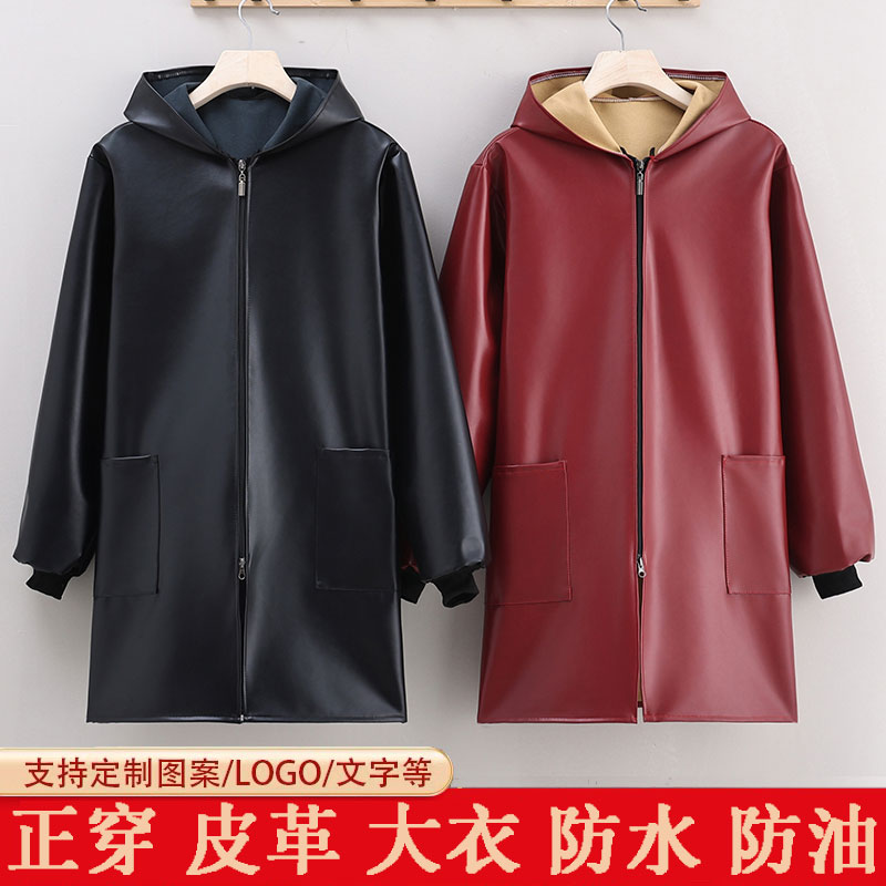 正穿长袖PU皮革外穿围裙防水防油耐弱酸碱早餐铺熟食店工作服定制